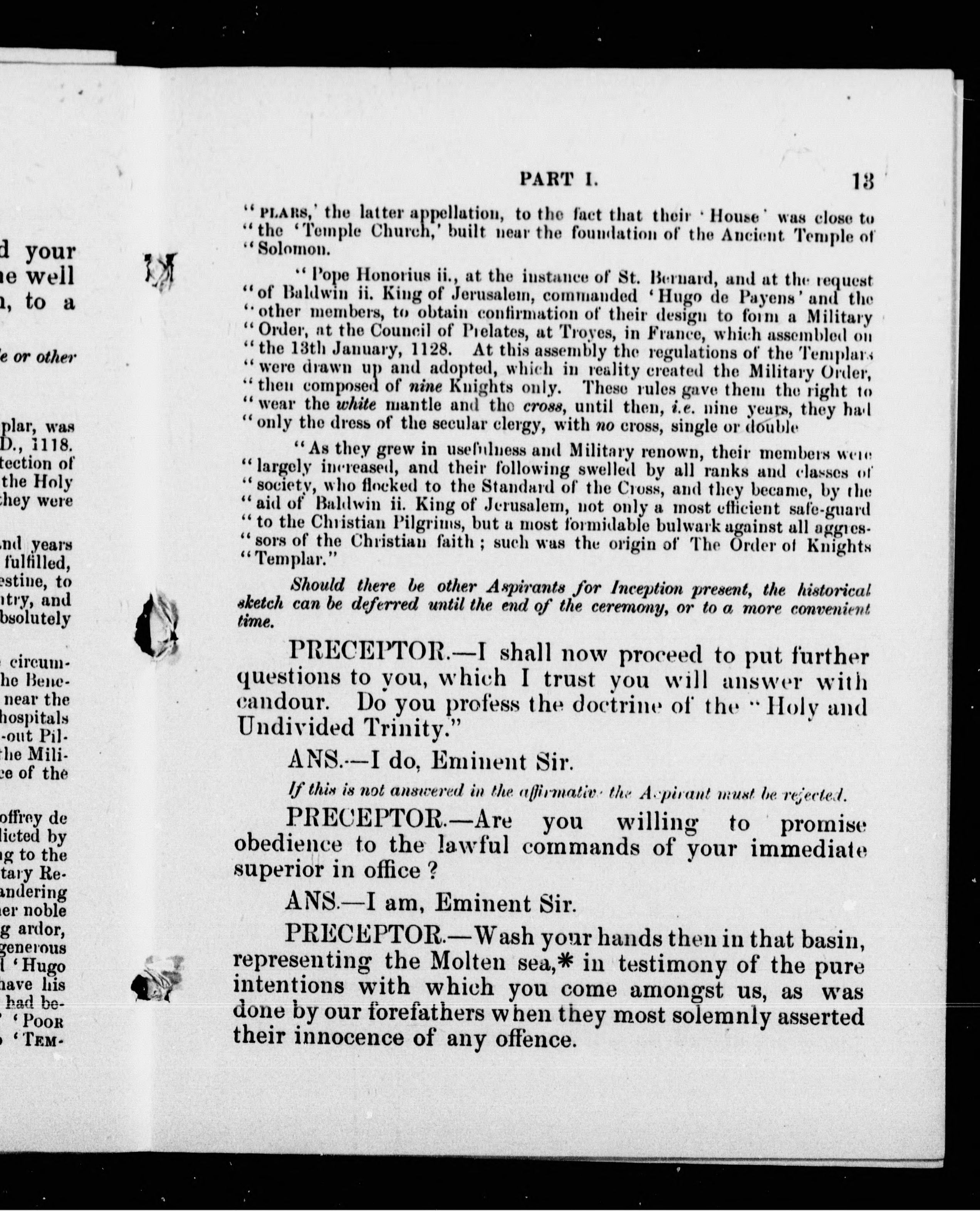 Knights Templar (Masonic Order). Sovereign Great Priory (Canada) -- Rituals.