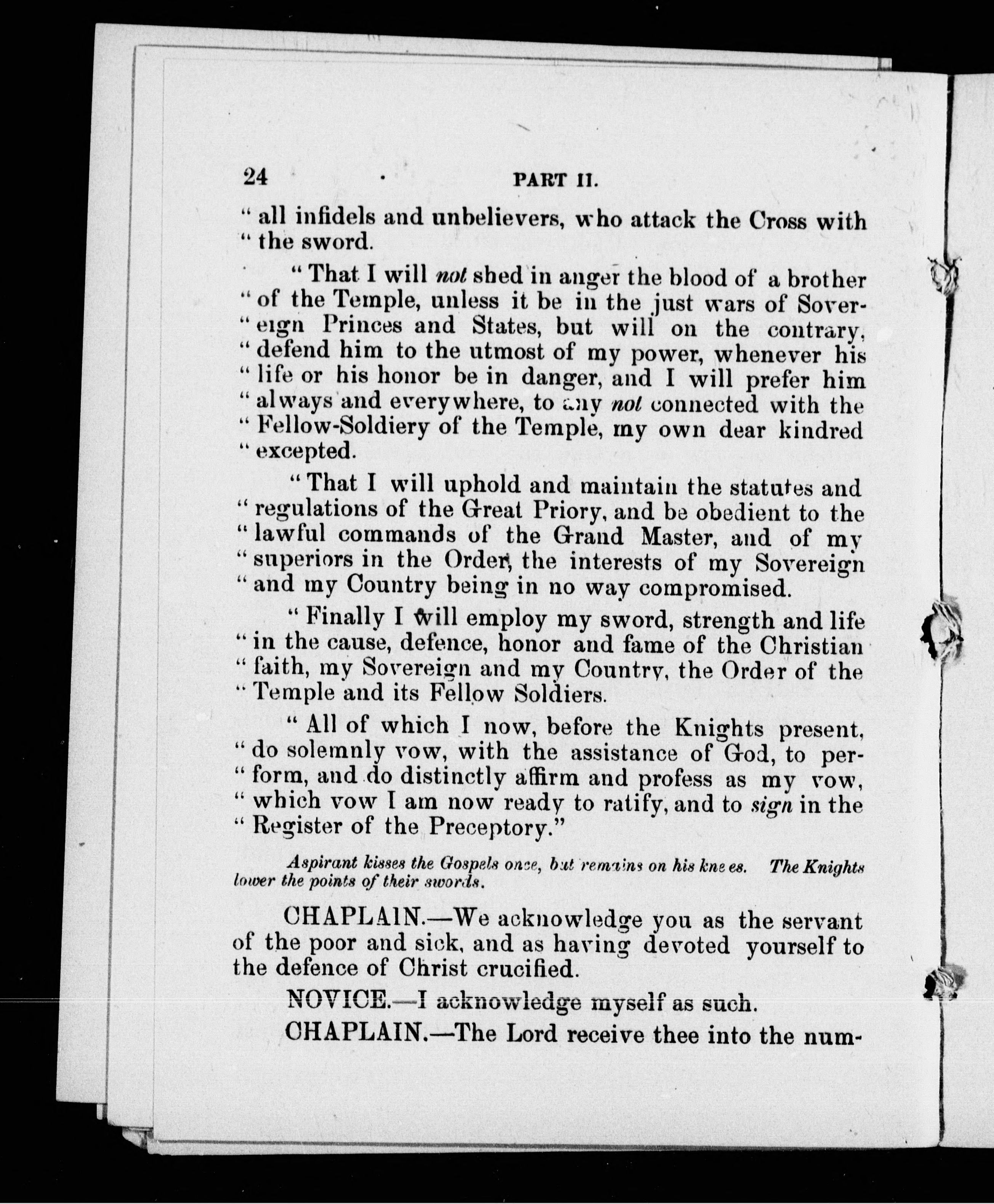 Knights Templar (Masonic Order). Sovereign Great Priory (Canada) -- Rituals.