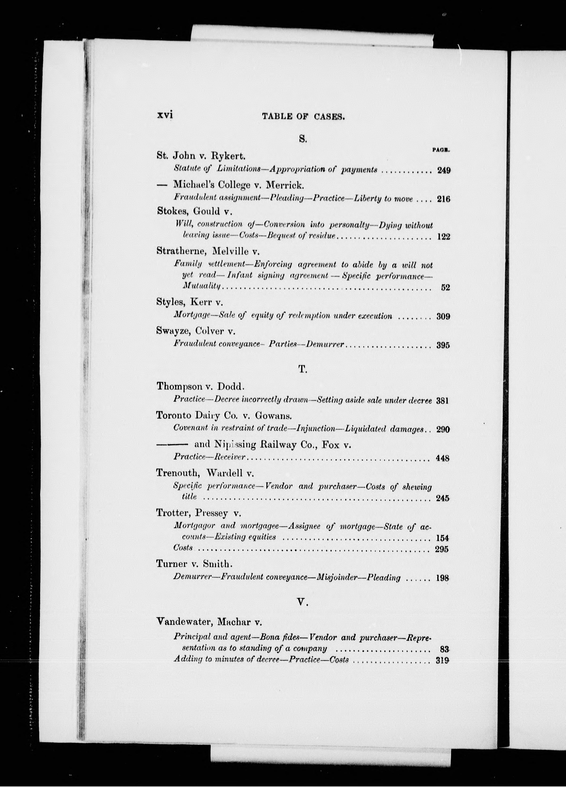 Title varies: Volumes 1-15: Reports of cases adjudged in the Court of Chancery of Upper Canada.