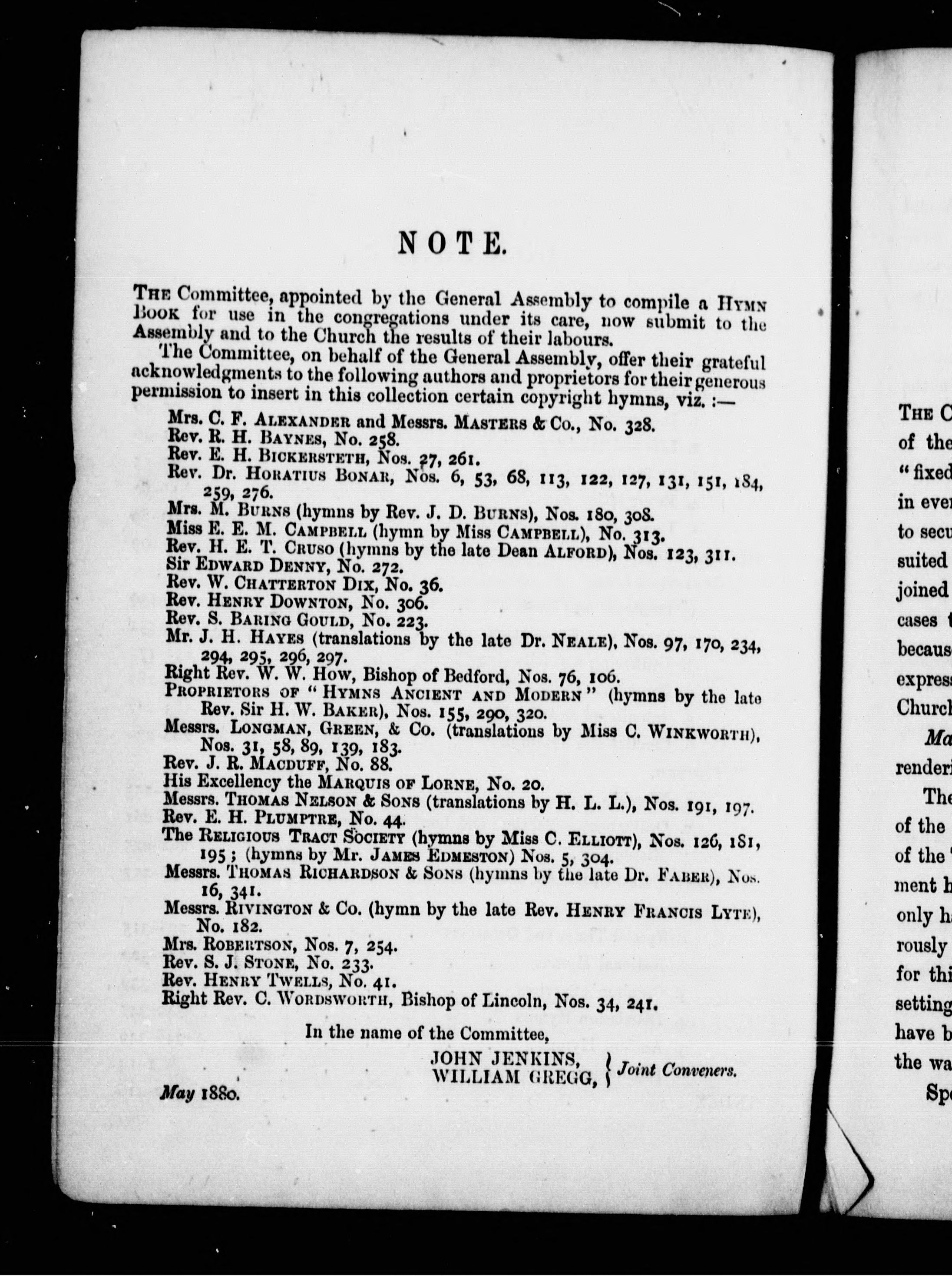 Toronto : Assembly's Hymnal Committee, 1885.; 437 images, 428 with full-text search