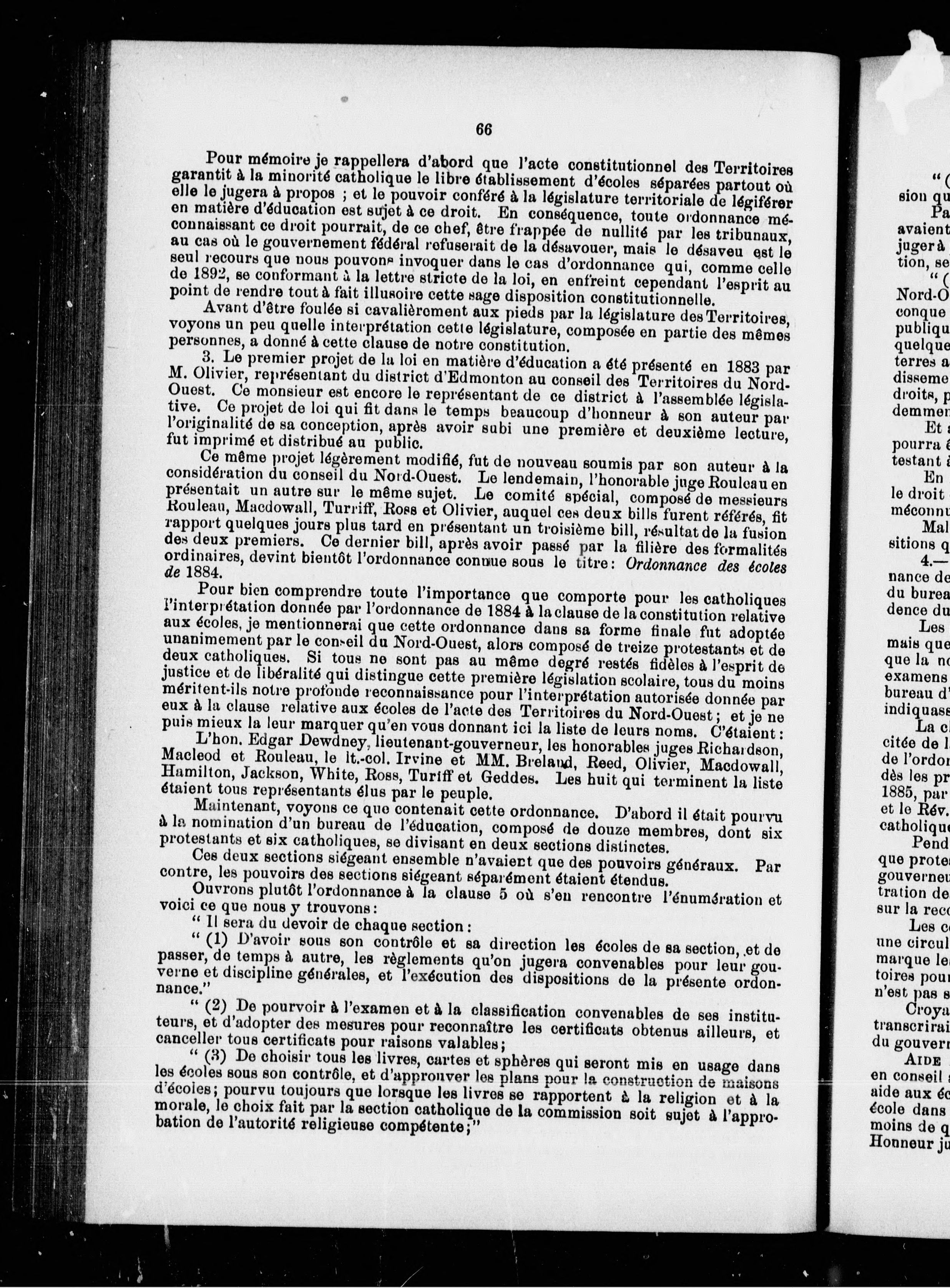 Lois scolaires et autres documents sur l'instruction publique concernant l'Assiniboia, l'Ile du Prince-Edouard, les Territoires du Nord-Ouest et le Manitoba y compris le jugement de la Cour suprême sur l'appel de la minorité du Manitoba.