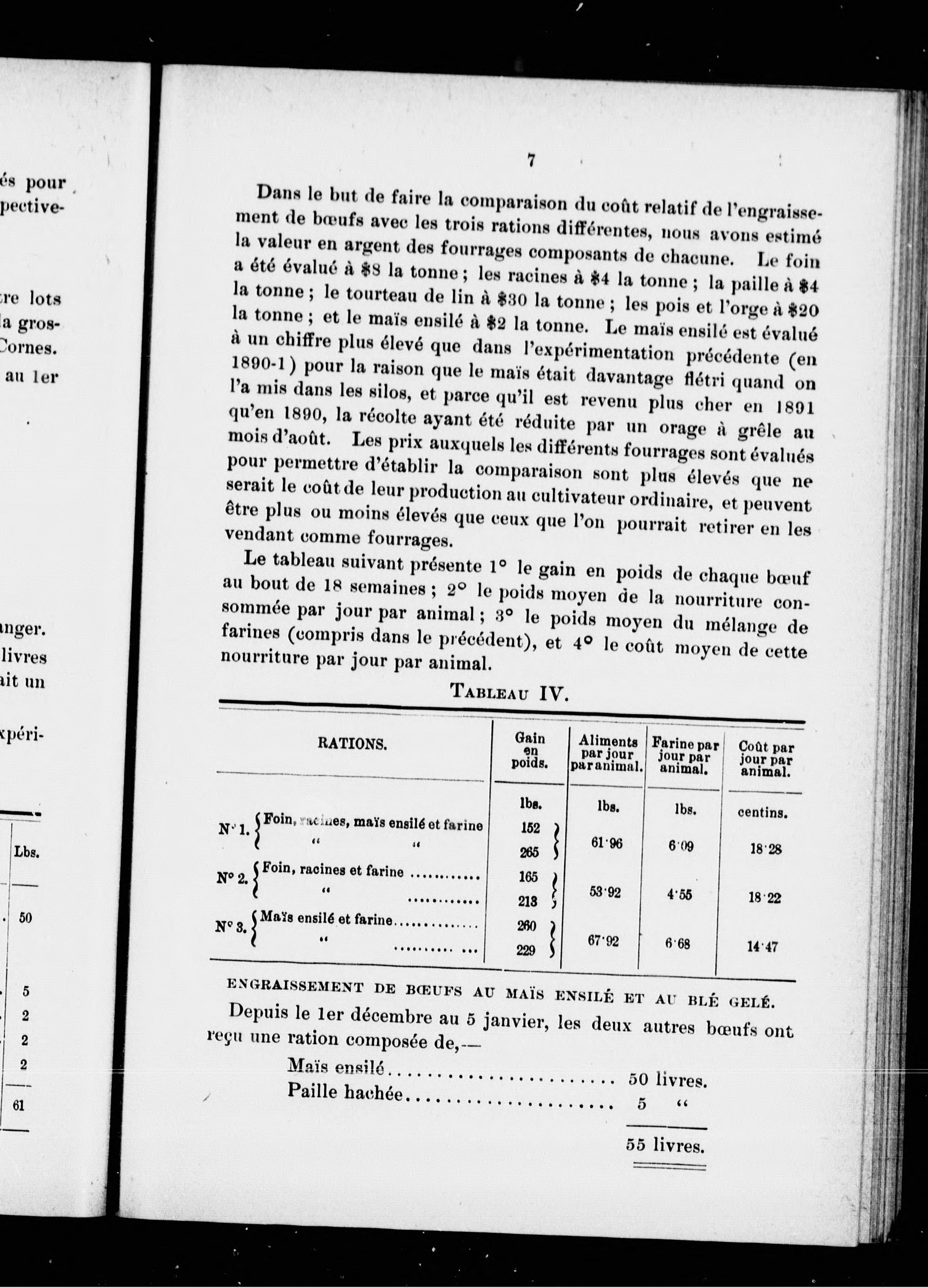 Expériences d'alimentation de boeufs /