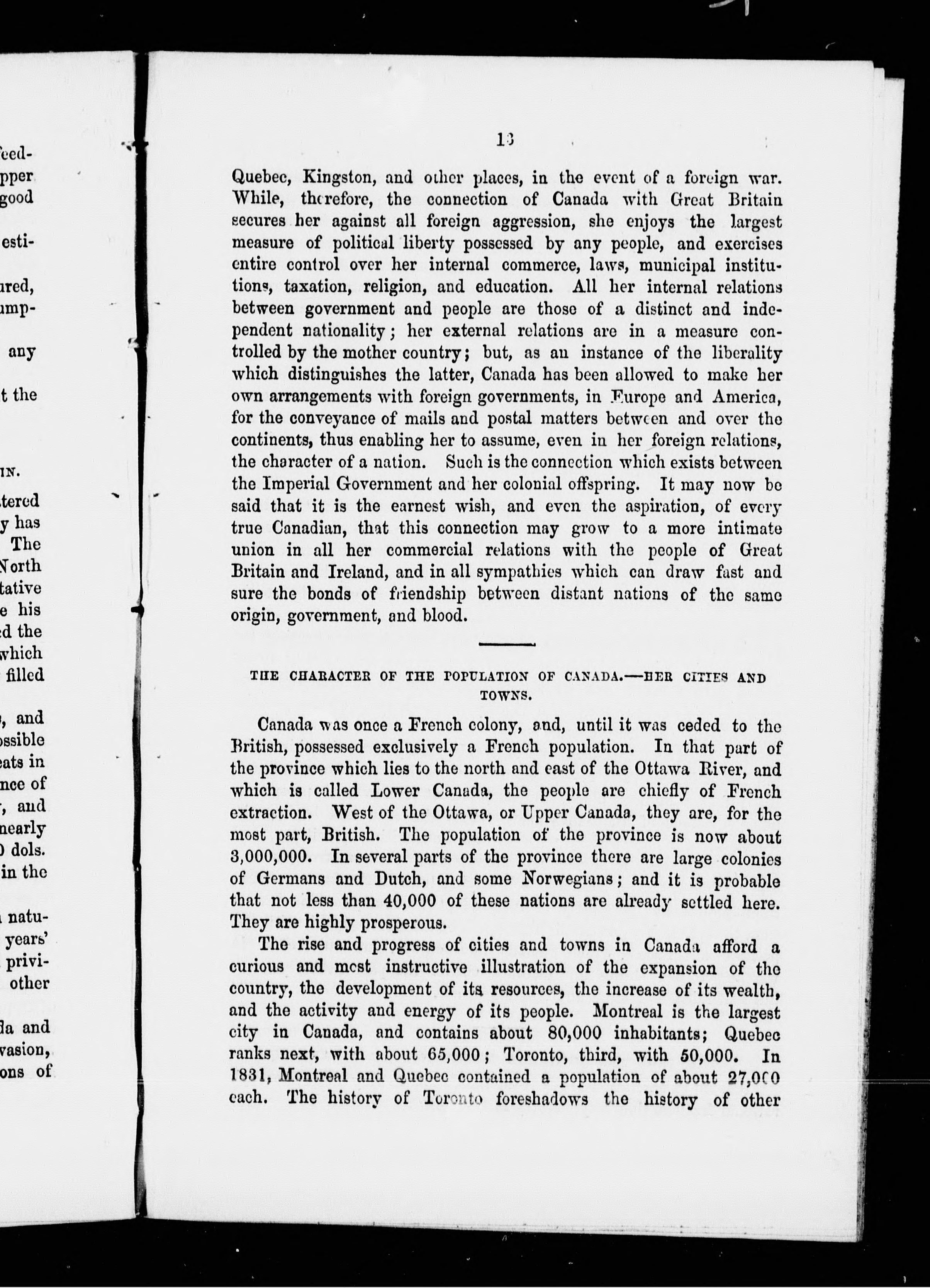Also published in French under title: Le Canada : courte esquisse de sa position géographique, ses productions, son climat, ses ressources, ses institutions scholaires et municipales, ses pêcheries, chemins de fer, andc. and c. andc. Québec: J. Lovell, 1860.