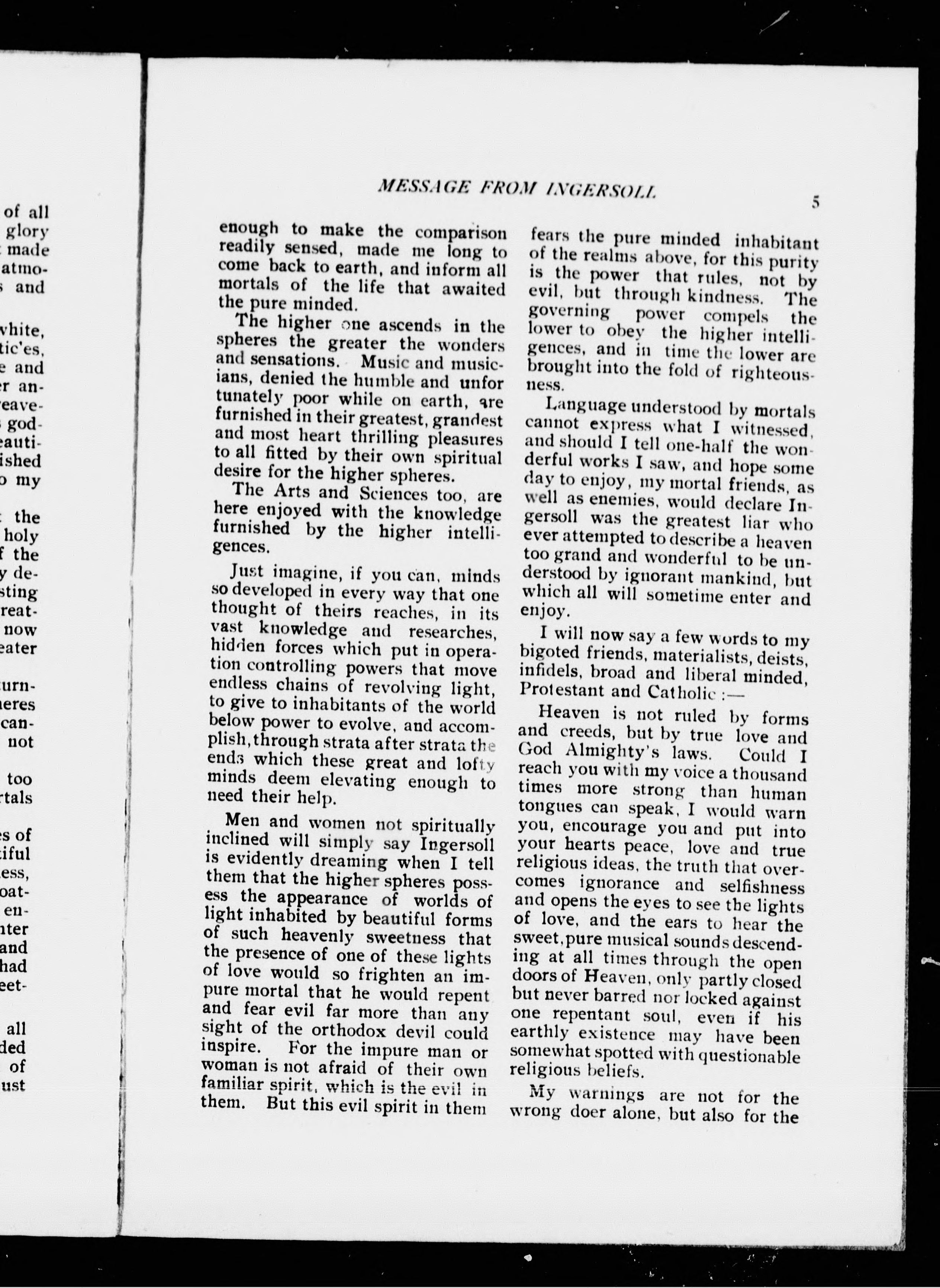 - A message purporting to be from Robert G. Ingersoll through a Philadelphia psychic.