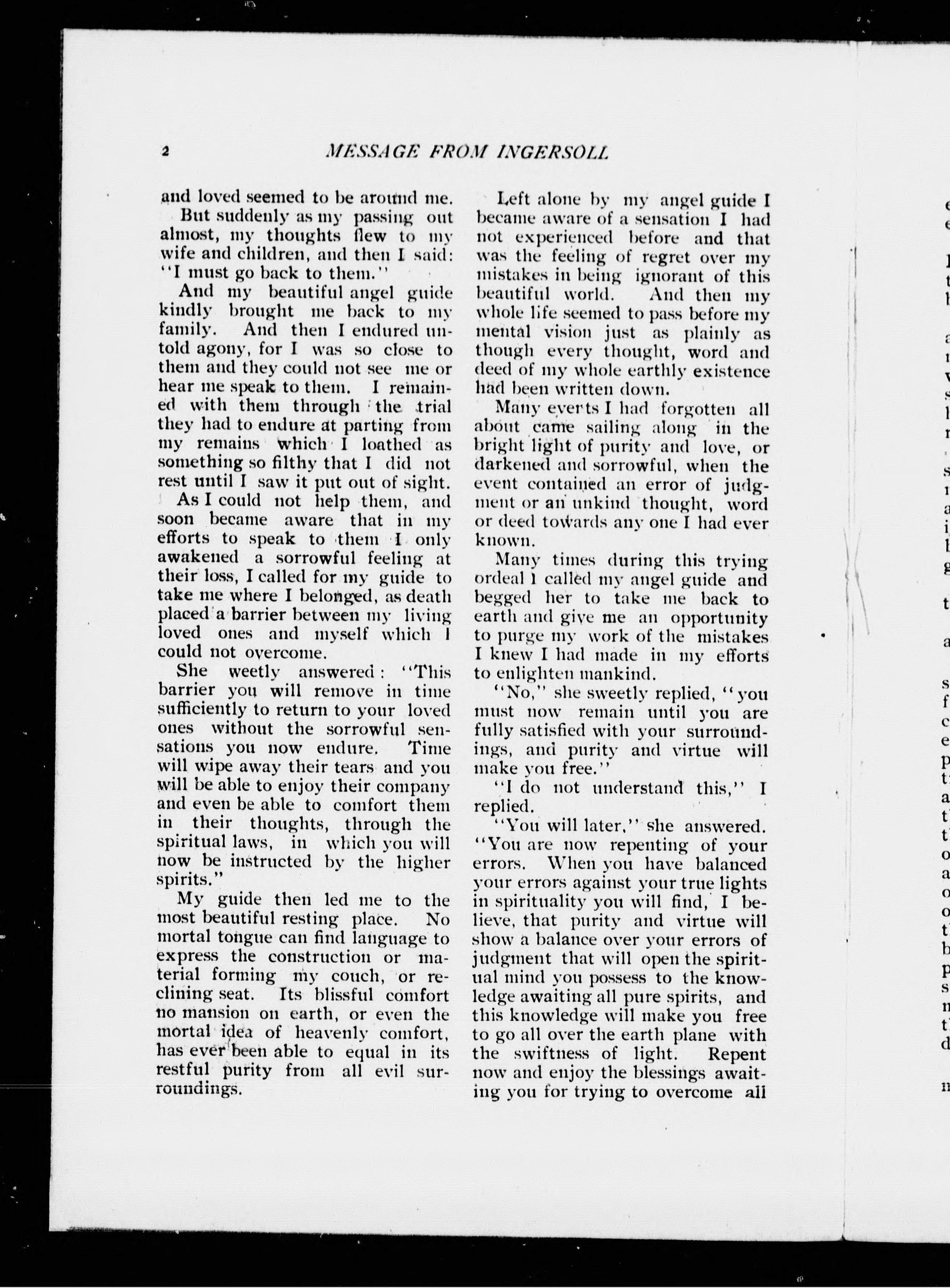 - A message purporting to be from Robert G. Ingersoll through a Philadelphia psychic.