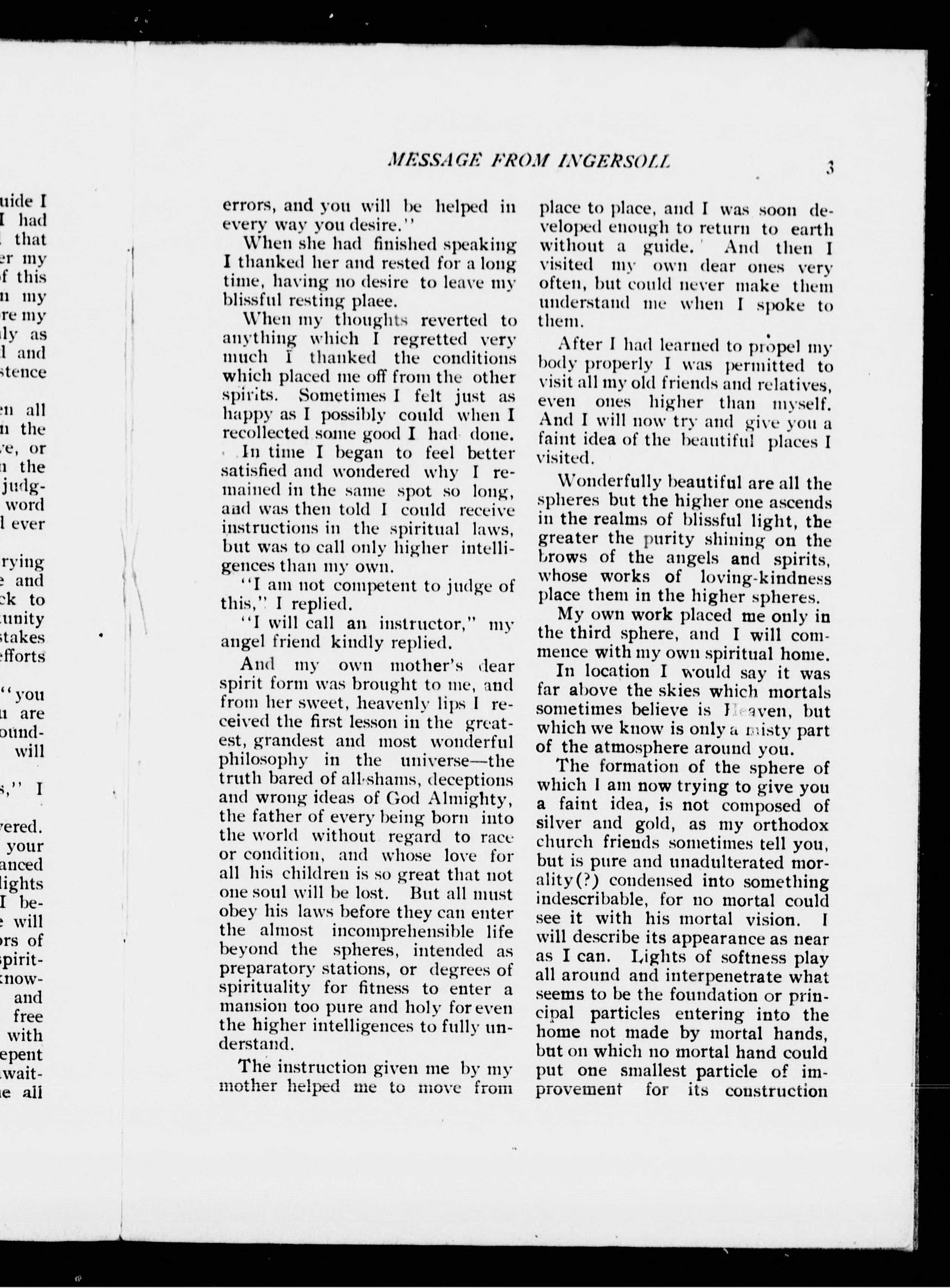 - A message purporting to be from Robert G. Ingersoll through a Philadelphia psychic.