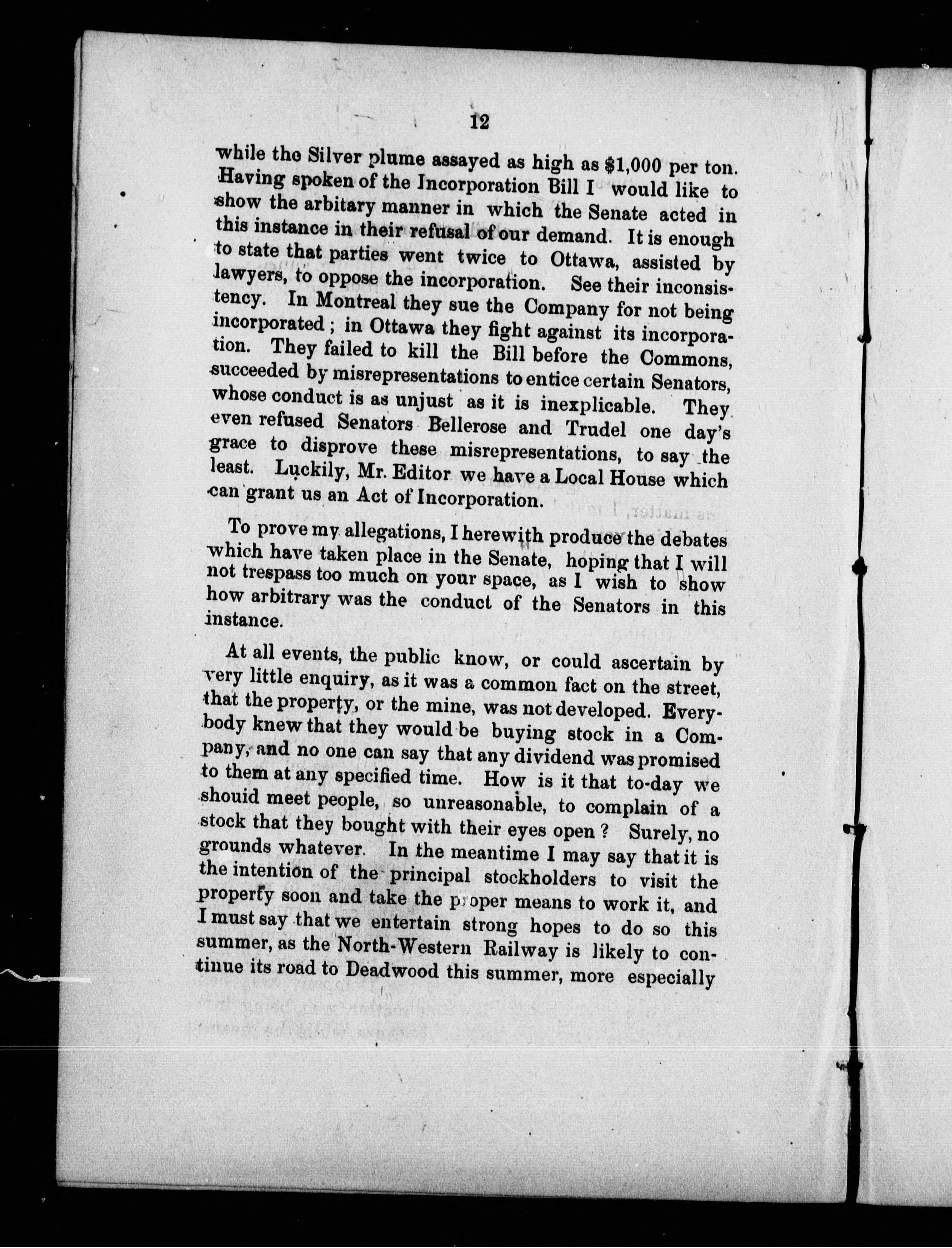 Silver Plume Mining Company : persecution against the company and justification.