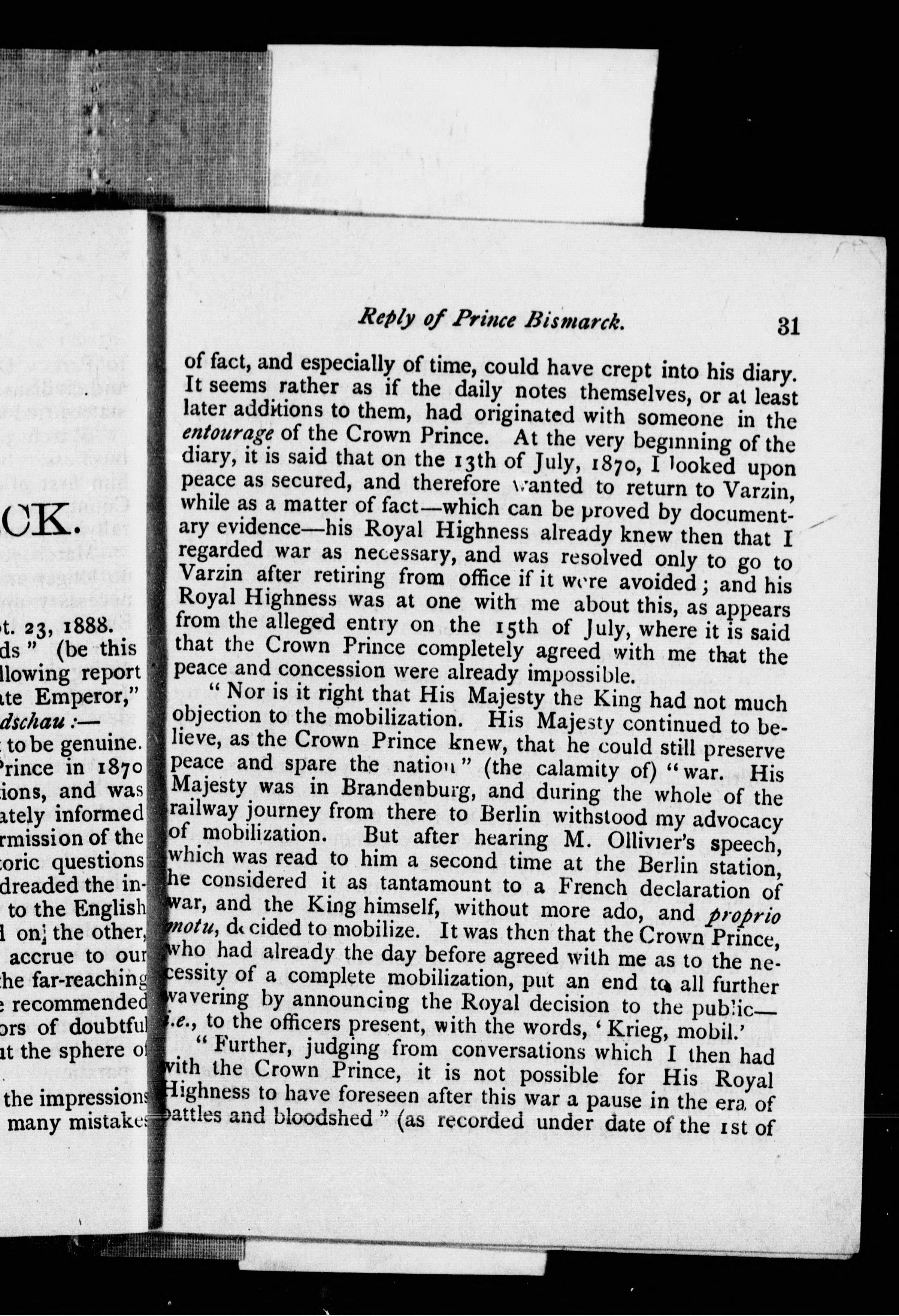 - Extracts from the diary of the late German Emperor with reply by Prince Bismarck.