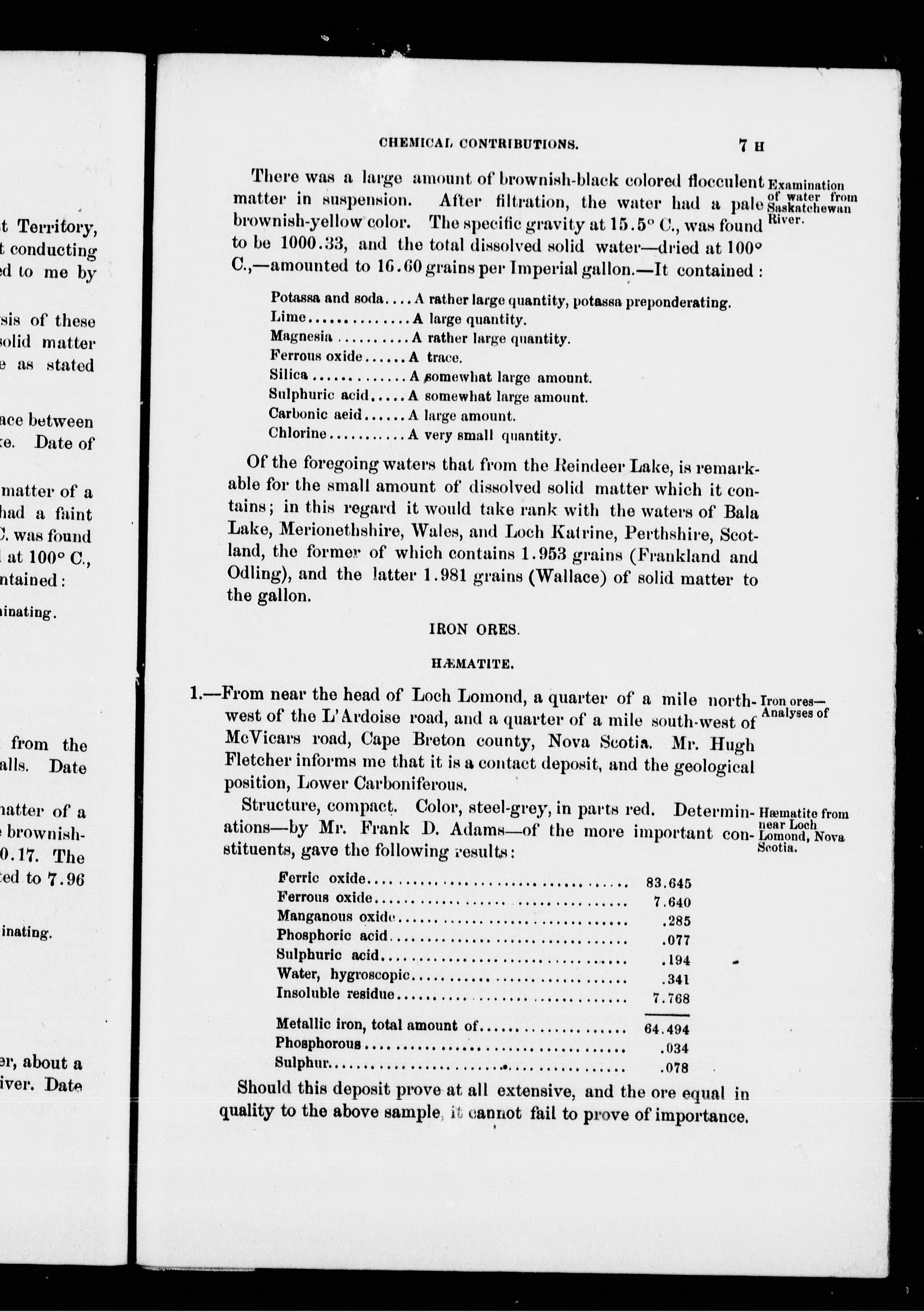 - Chemical contributions to the geology of Canada : from the laboratory of the Survey