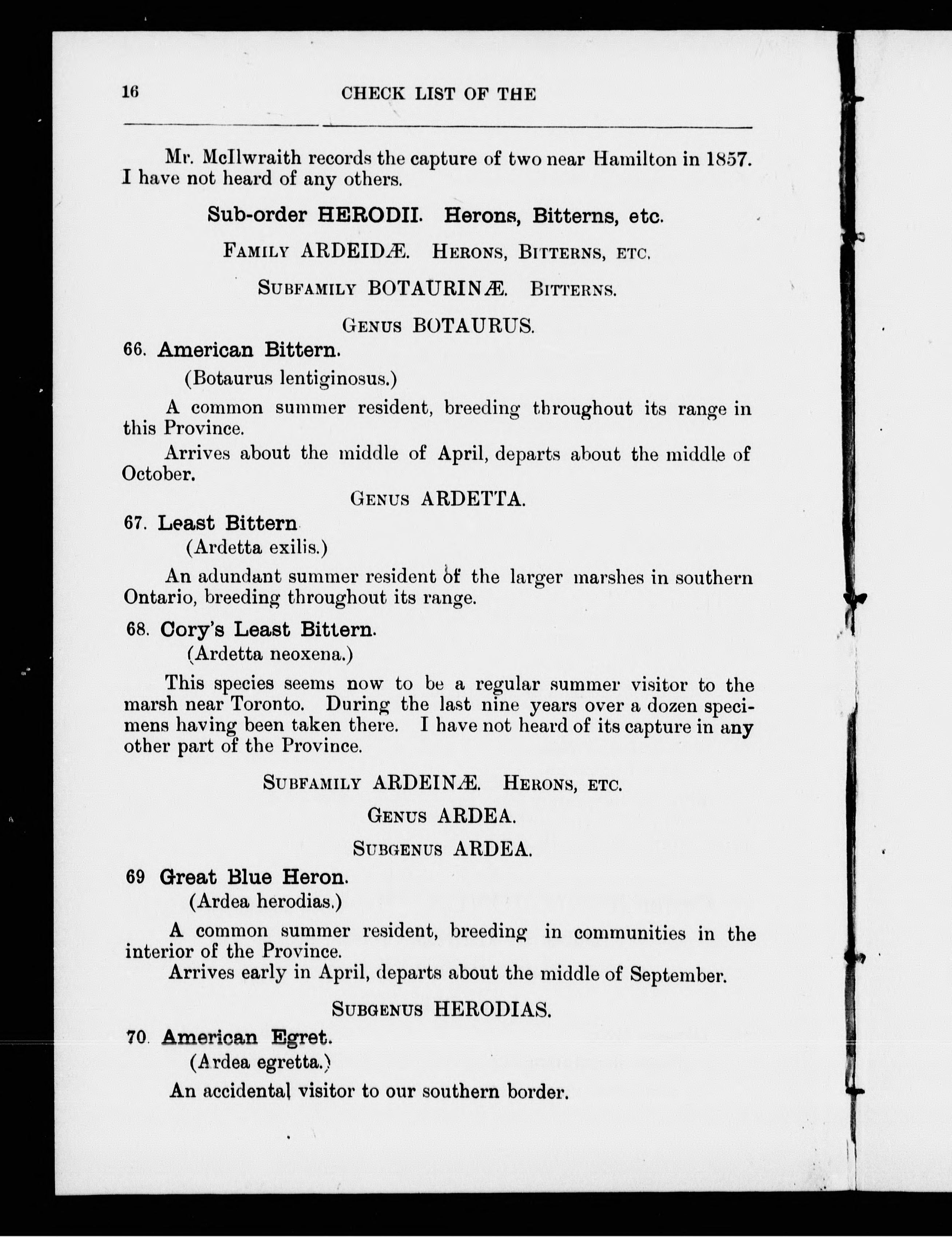 Check list of the birds of Ontario and catalogue of birds in the biological section of the museum, Department of Education, Toronto.