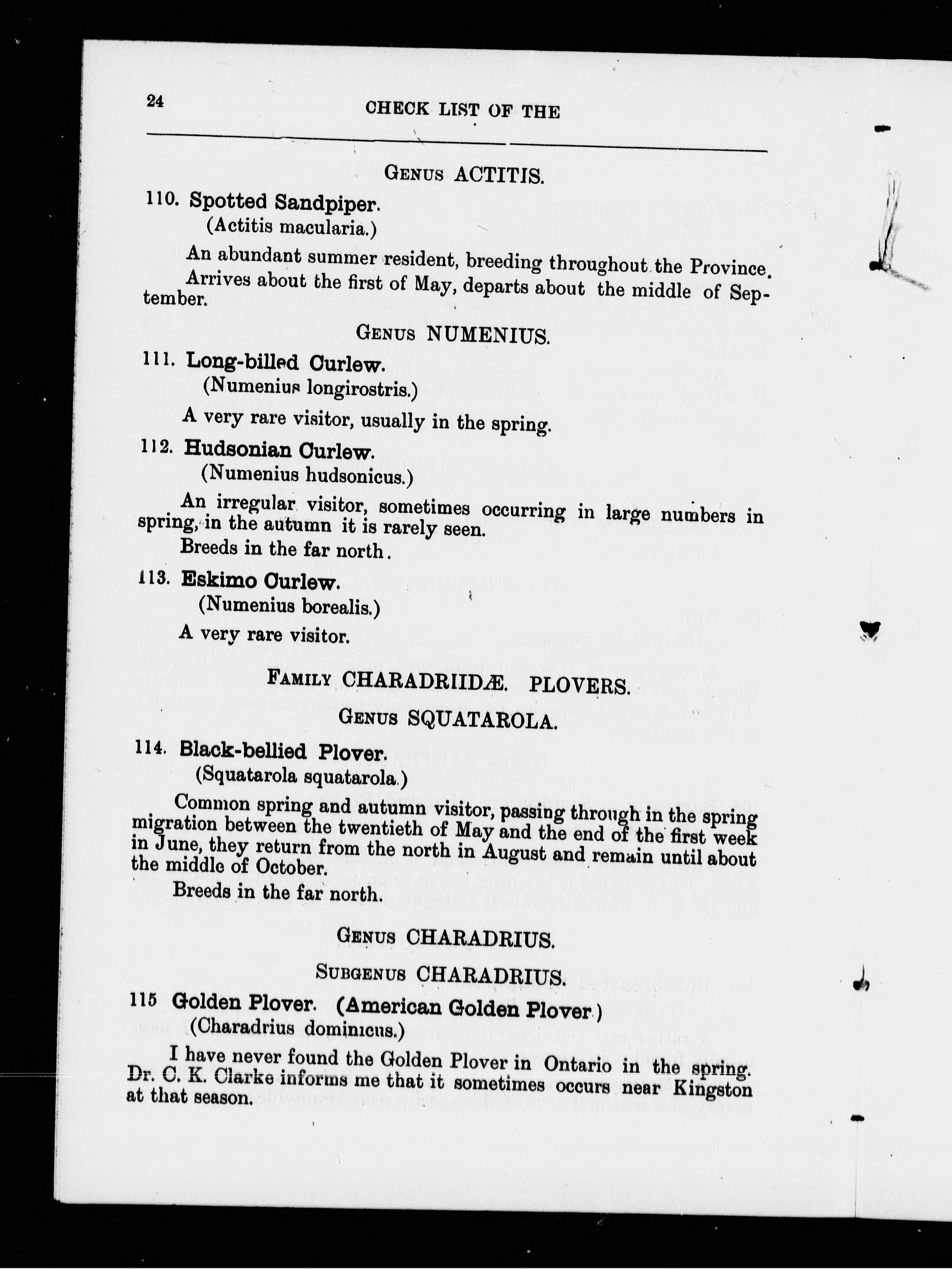 Check list of the birds of Ontario and catalogue of birds in the biological section of the museum, Department of Education, Toronto.