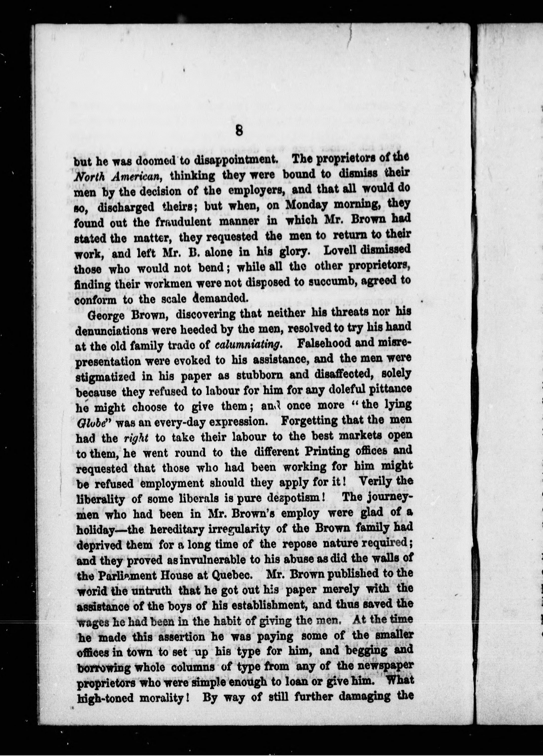 Signed and dated: Journeymen Printers of Toronto, Toronto, July, 1853.