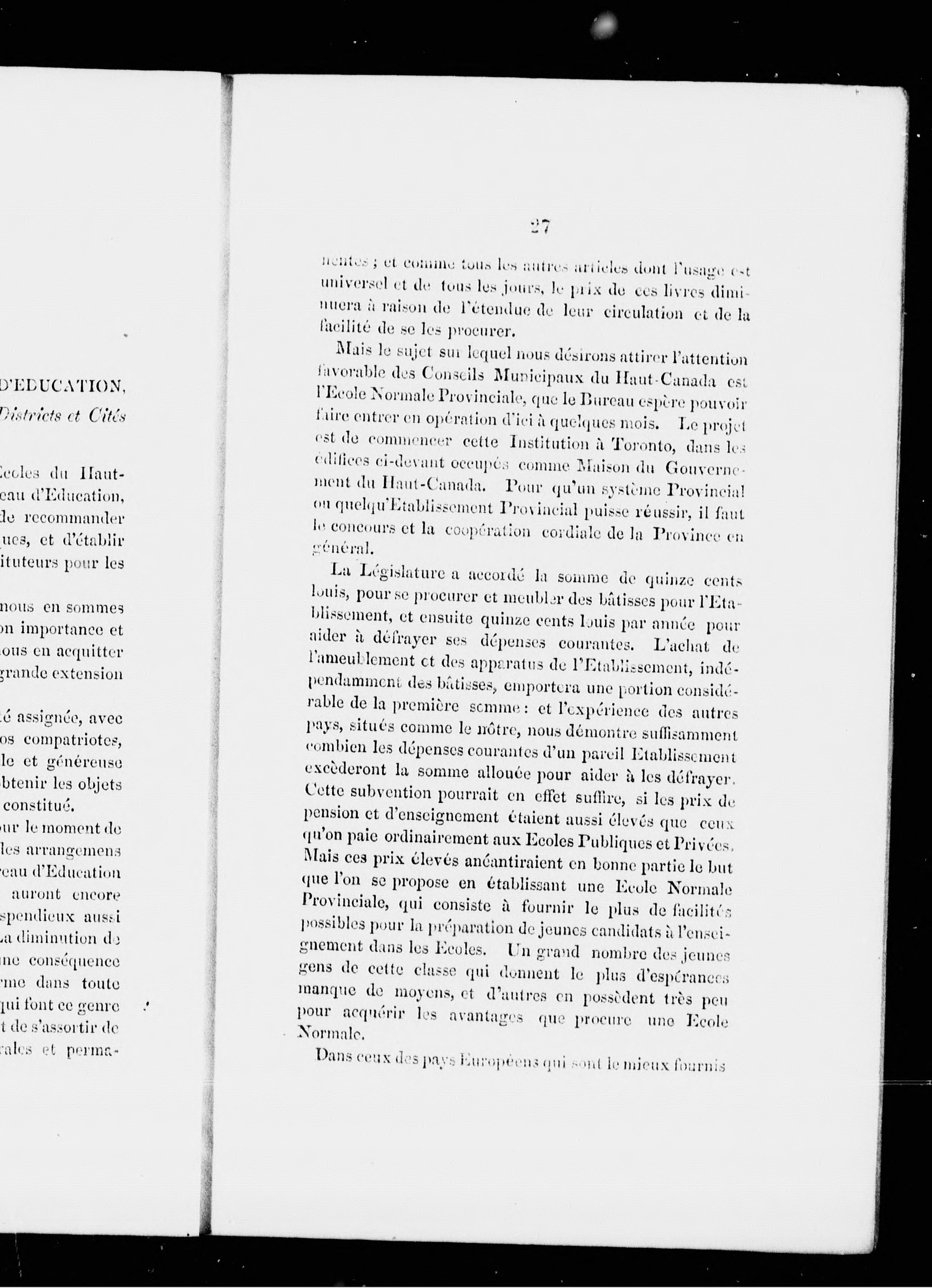 Rapport spécial sur les mesures qui ont été adoptées pour l'établissement d'une école normale :