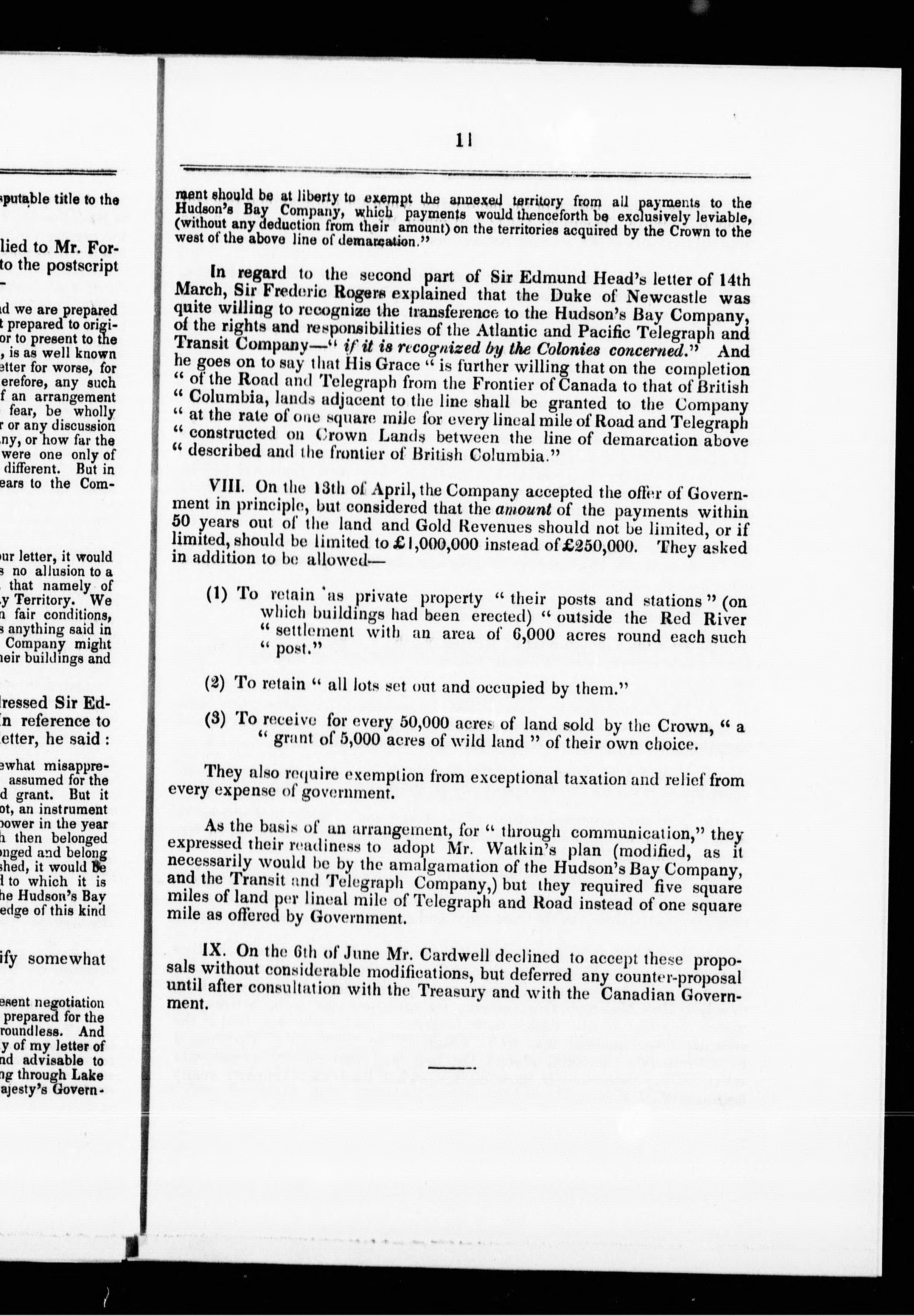 - Documents relating to the opening up of the North-West Territories to settlement and cultivation.