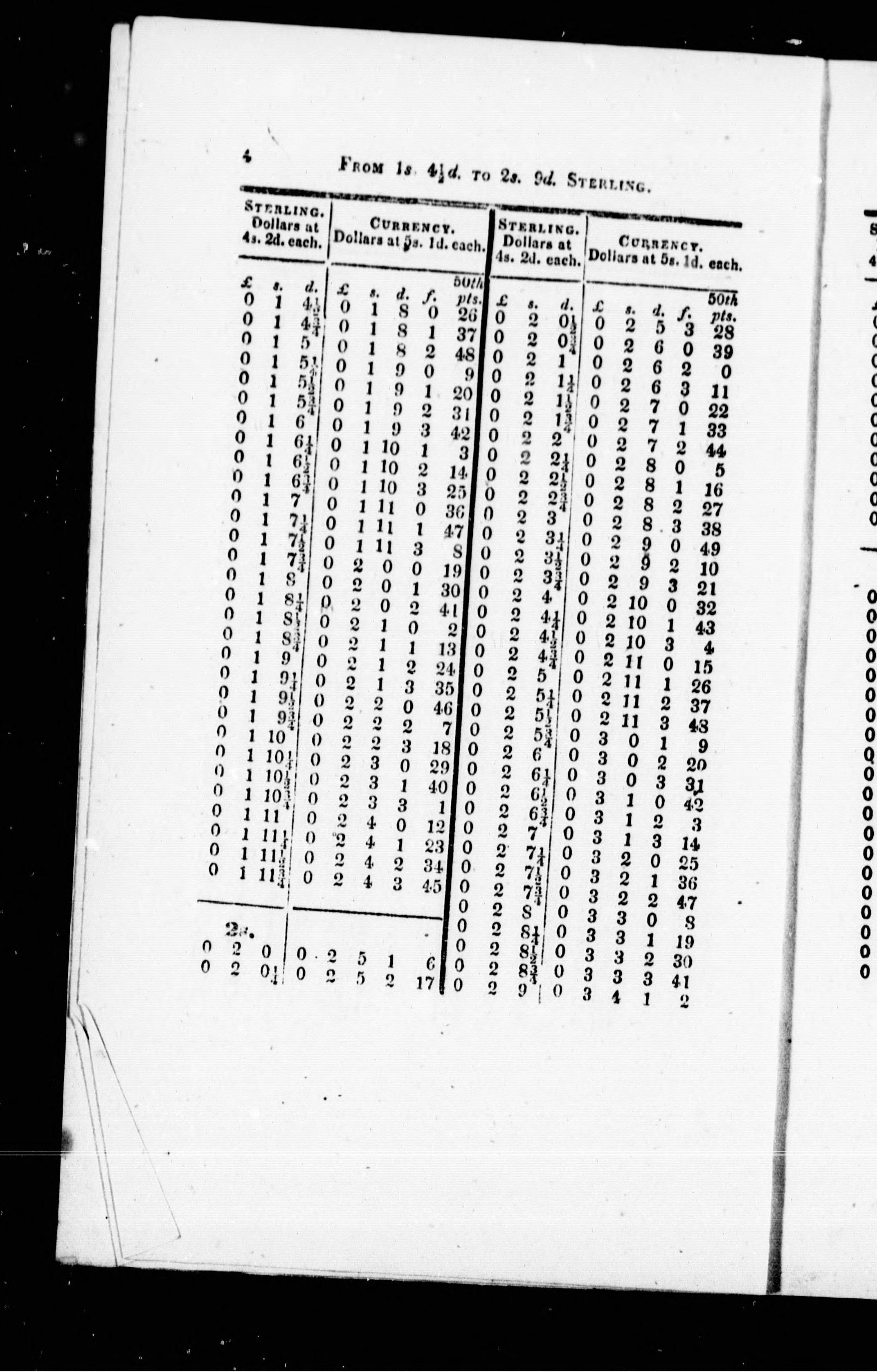 - A table of computations, converting sterling, dollars at 4s. 2d. into currency, dollars at 5s. 1d. each, and vice versa : in a progressive series, from 1 farthing to £100,000