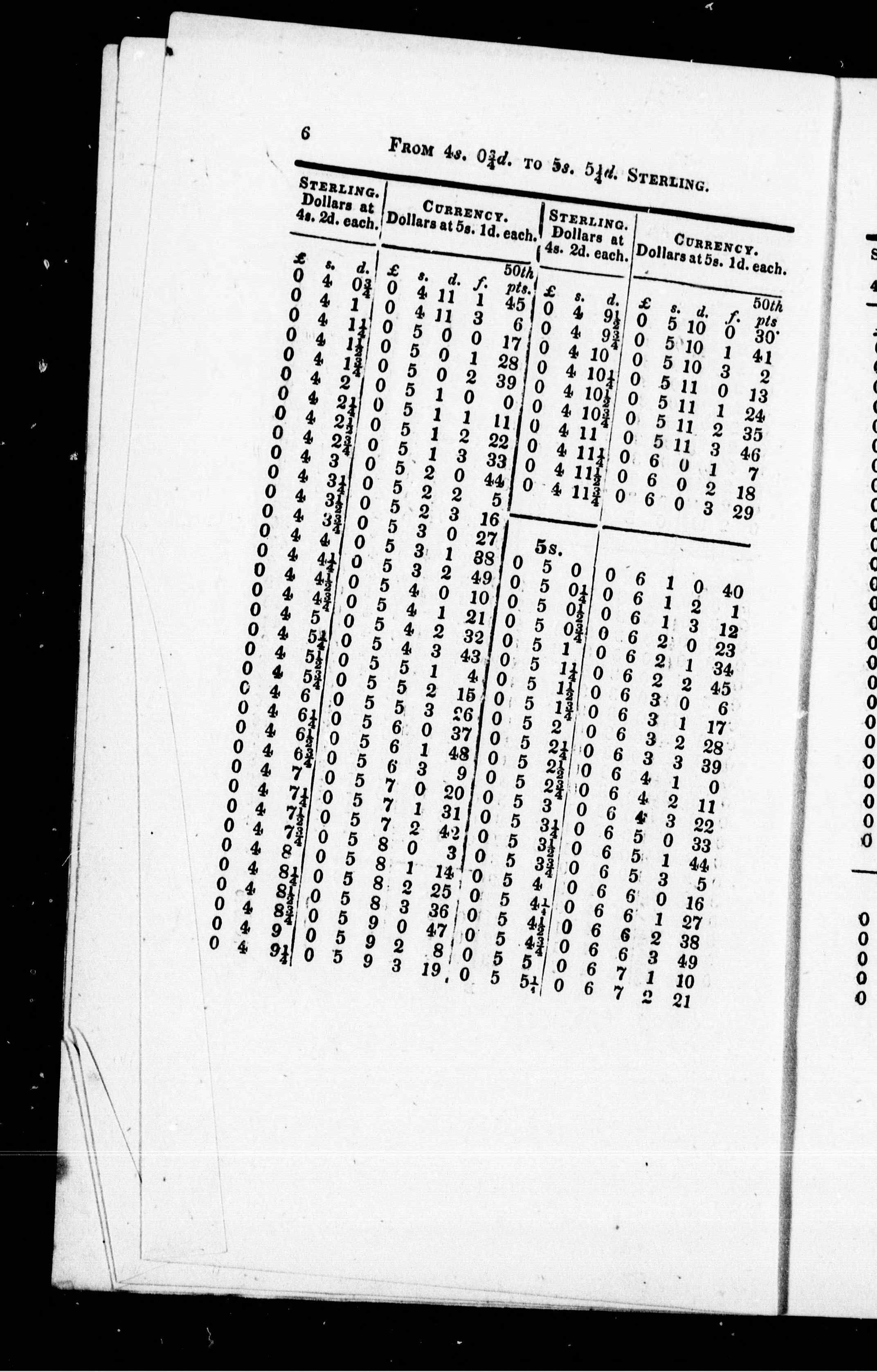 - A table of computations, converting sterling, dollars at 4s. 2d. into currency, dollars at 5s. 1d. each, and vice versa : in a progressive series, from 1 farthing to £100,000