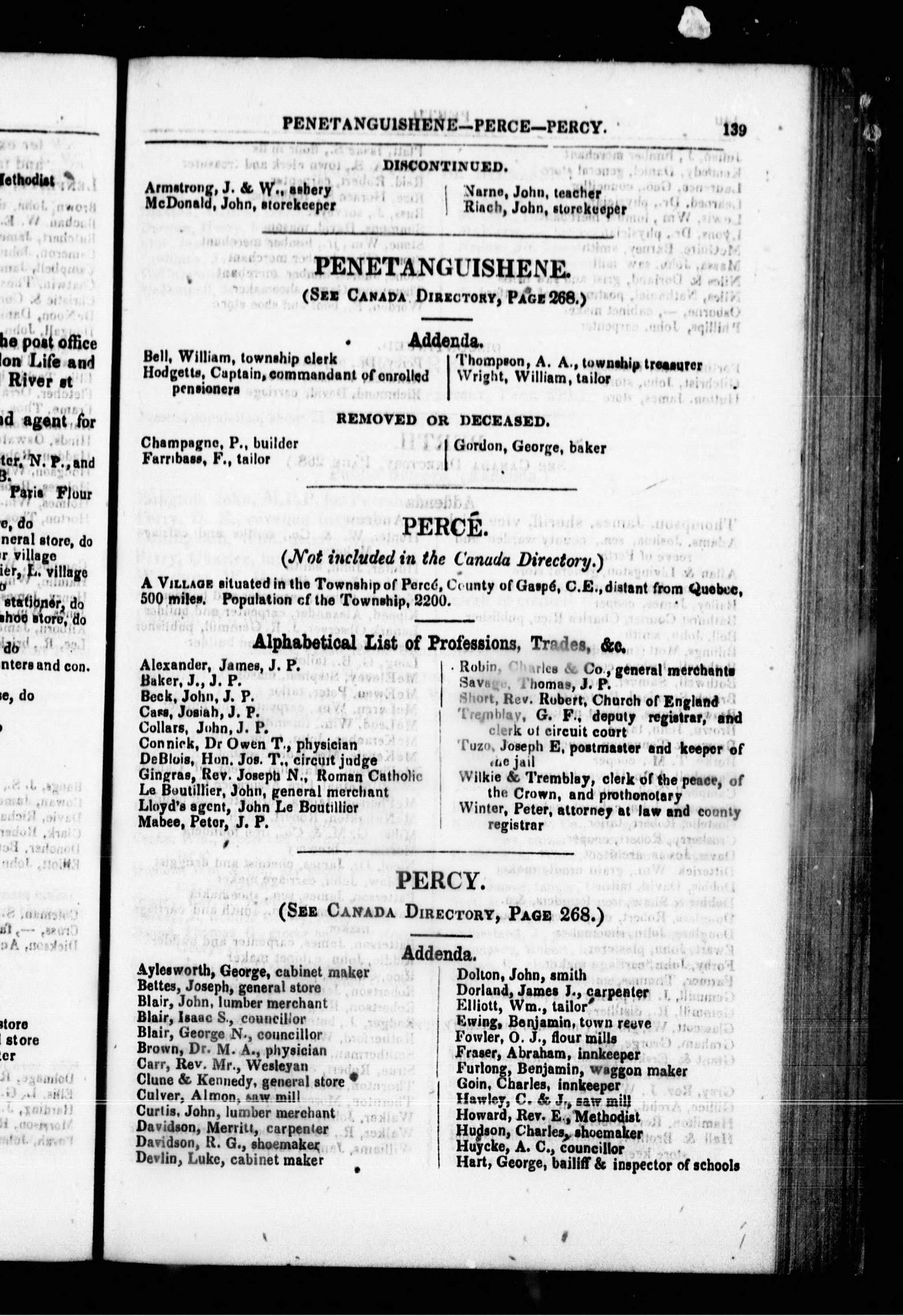 A Supplement to the Canada directory, containing the names of the professional and business men in the cities, towns and principal villages of Canada, who have commenced business in each locality since the publication of that work : together with a list of new post offices & postmasters, an abstract of the late census returns, a list of newspapers & periodicals published in the province, and other useful statistical & commercial information, brought down to April, 1853, accompanied by a map of Canada (corrected expressly for the purpose), exhibiting its present geographical & municipal divisions, and (approximately) the various lines of railroad constructed, in progress, or chartered