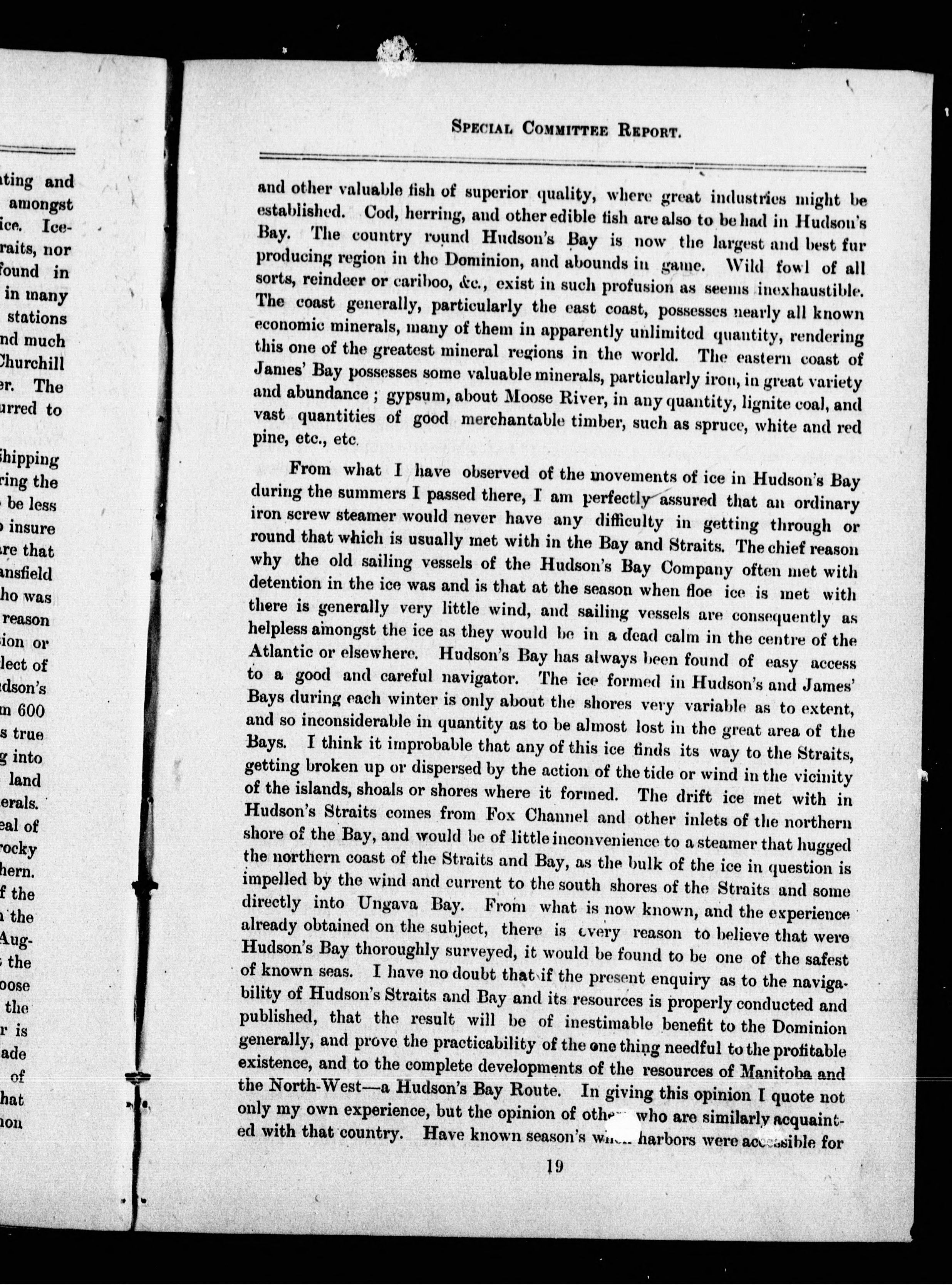 Report of the Select Committee of the Legislative Assembly of the Province of Manitoba, appointed to procure evidence as to the practicability of the establishment of a system of communication with this province via Hudson's Bay