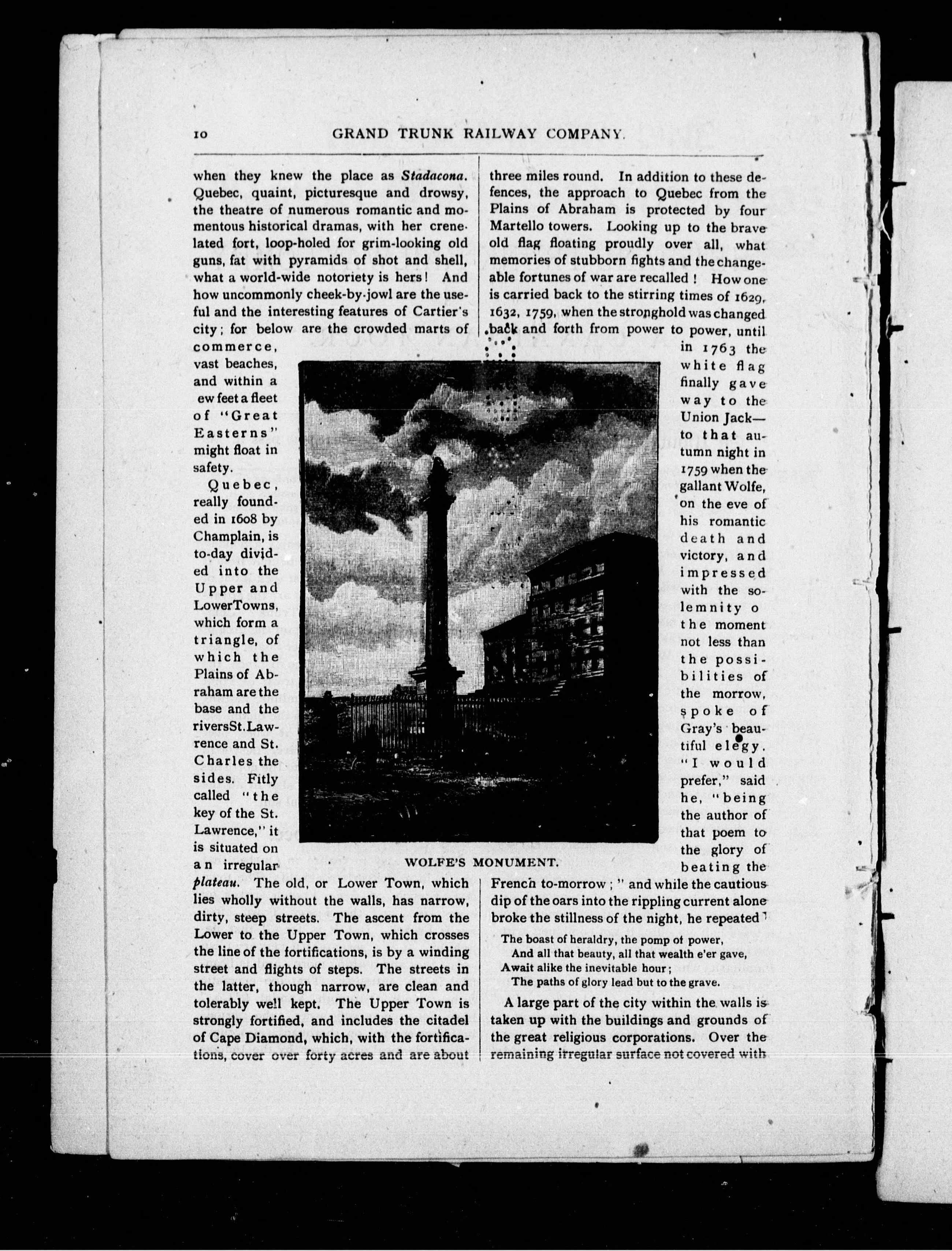 A few of the many points of interest noted in a tour of Canada over the system of the Grand Trunk Railway Co.