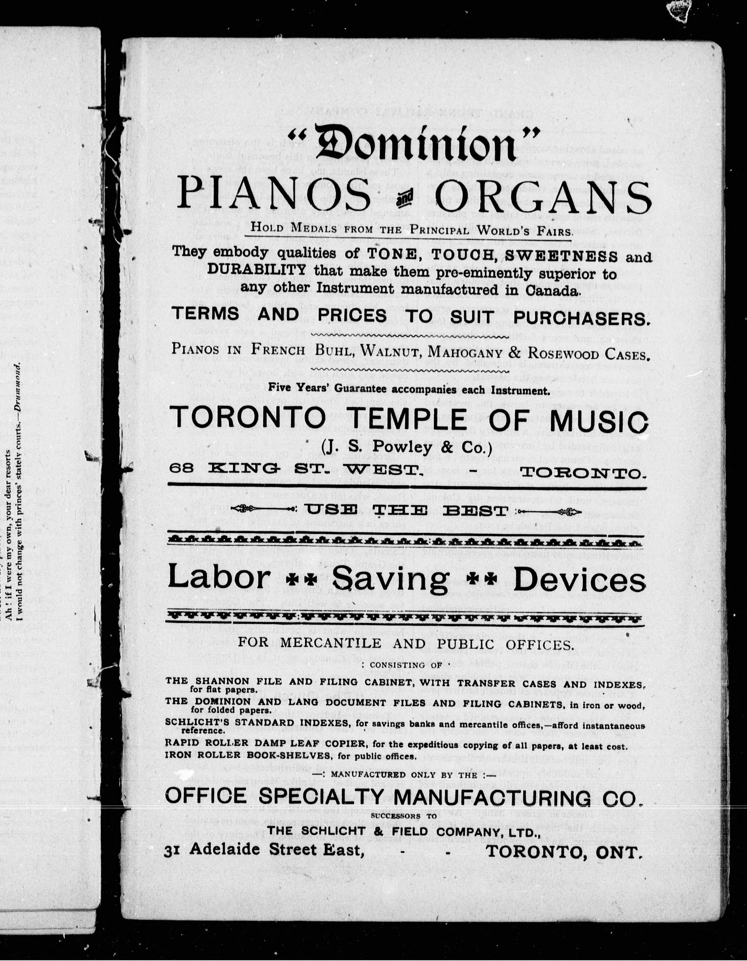 Toronto : A.H. Dixon, 1889.; 53 images, 50 avec recherche en texte intégral
