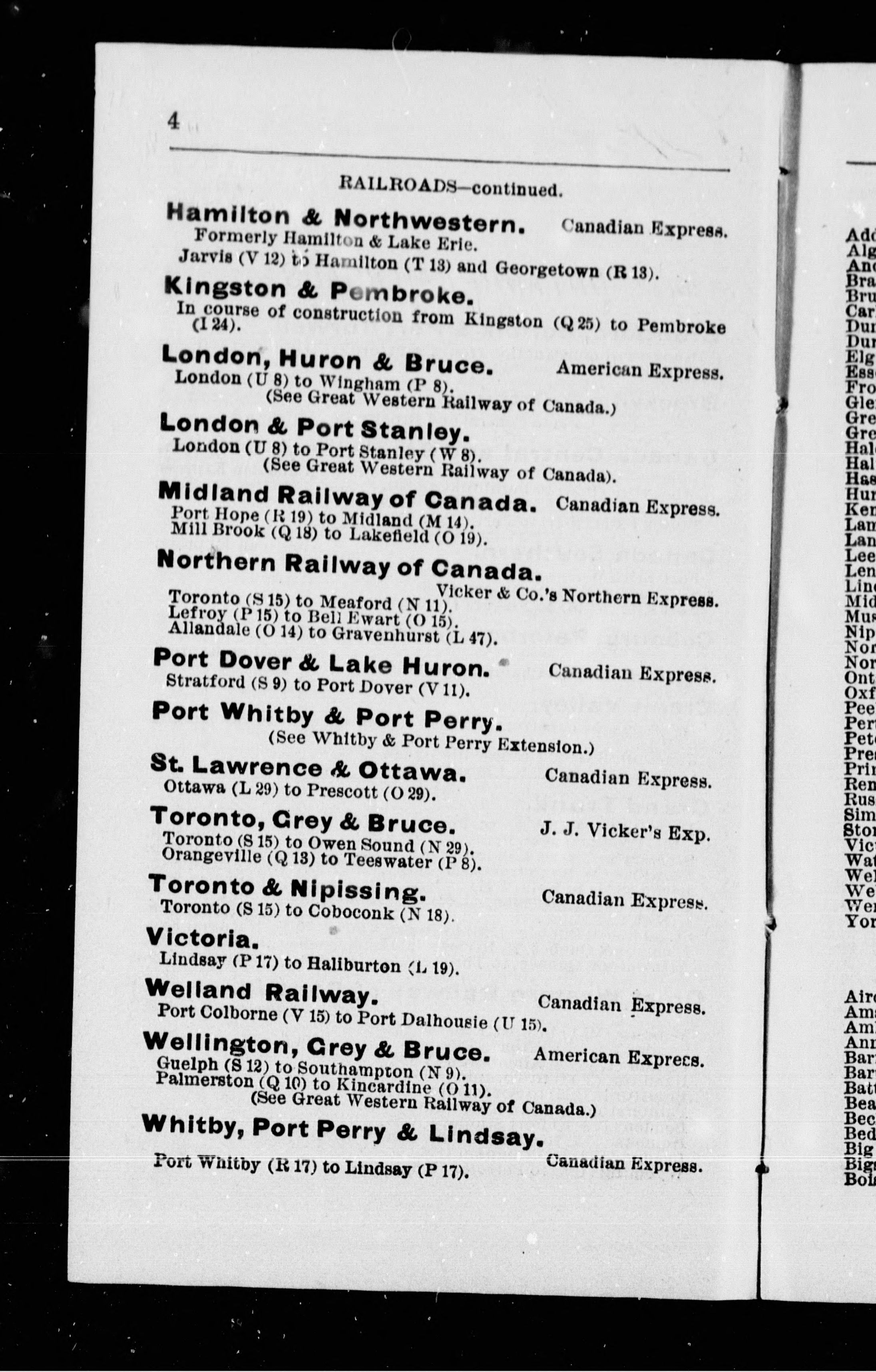 The gazetteer with indexed map of Ontario ..., showing the railroads and the express company doing business over each : also, counties, islands, lakes & rivers, together with every post office, railroad station or town, carefully indexed, referring to the exact location where each may be found on the map