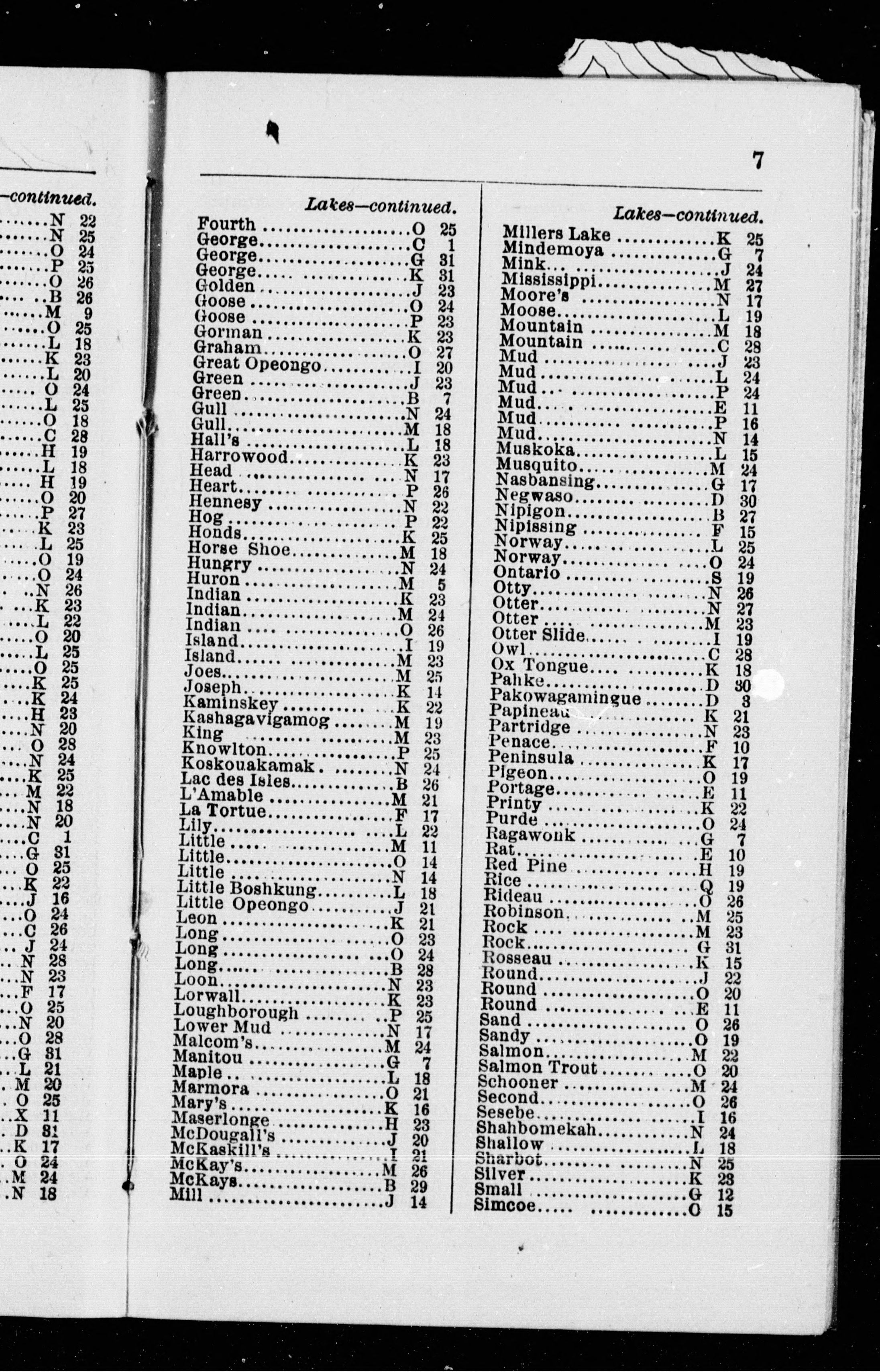 The gazetteer with indexed map of Ontario ..., showing the railroads and the express company doing business over each : also, counties, islands, lakes & rivers, together with every post office, railroad station or town, carefully indexed, referring to the exact location where each may be found on the map
