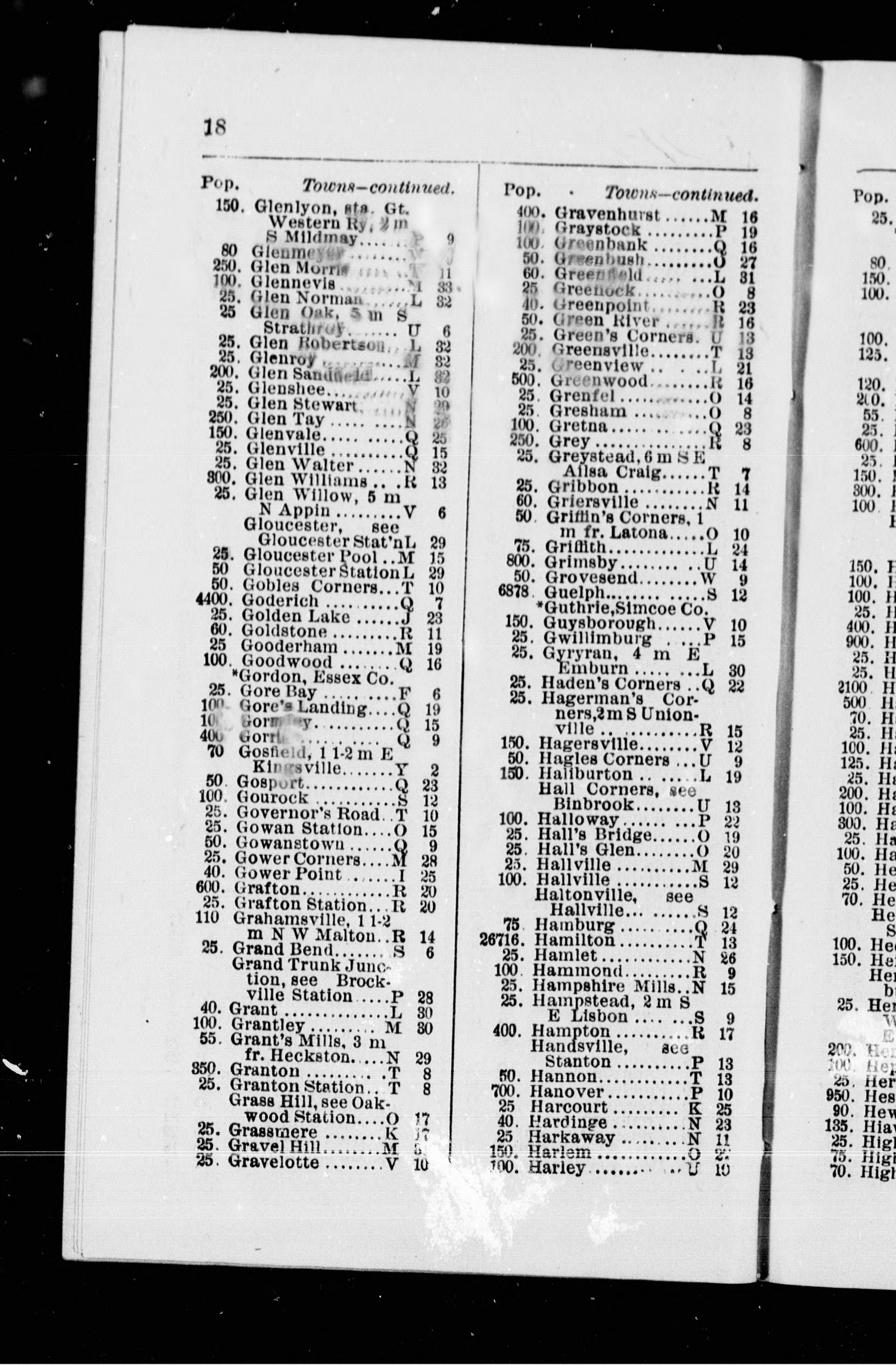 The gazetteer with indexed map of Ontario ..., showing the railroads and the express company doing business over each : also, counties, islands, lakes & rivers, together with every post office, railroad station or town, carefully indexed, referring to the exact location where each may be found on the map
