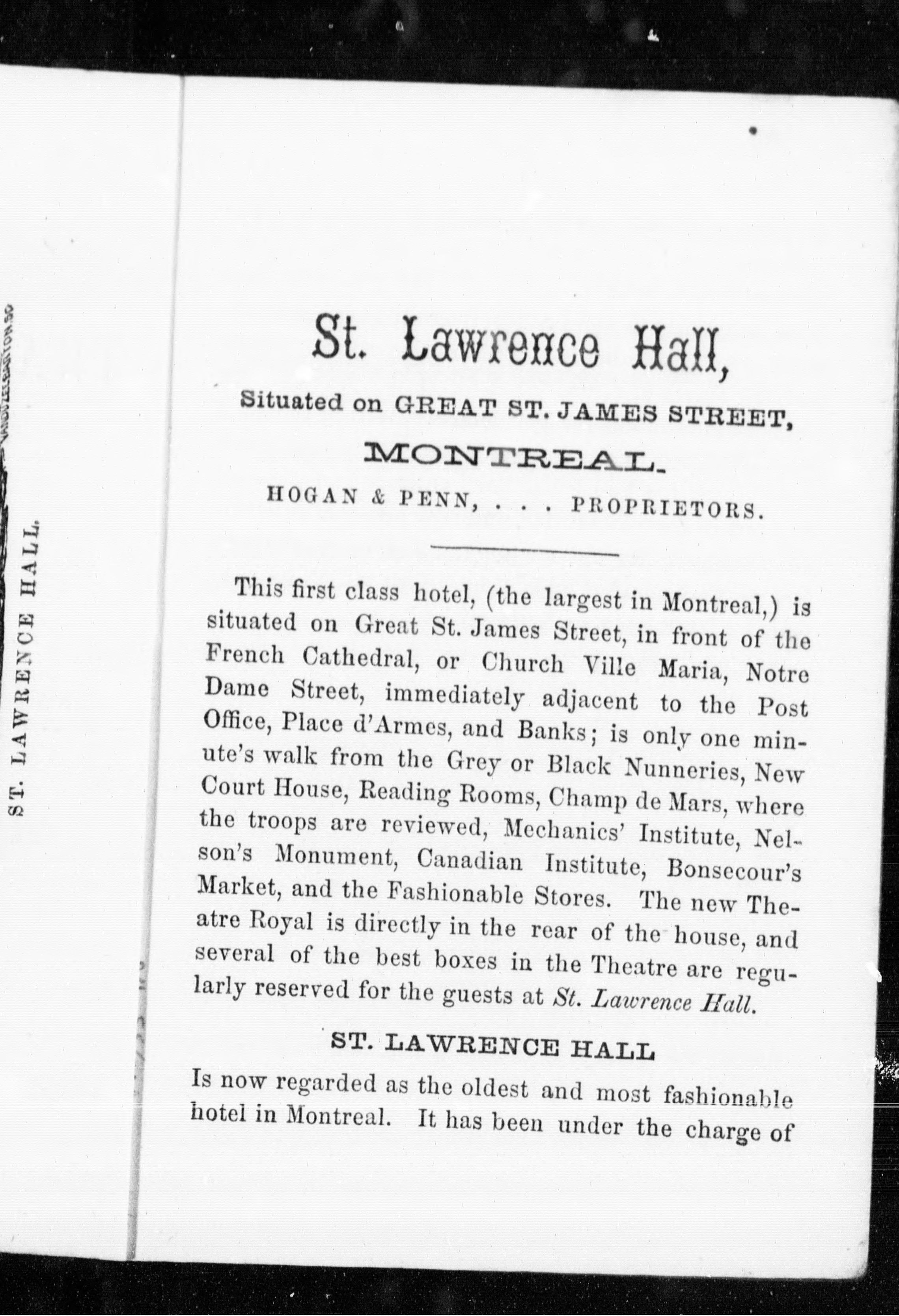 - The Travellers' guide for Montreal and its vicinity : St. Lawrence Hall, Great St. James Street, opposite the French cathedral and post office, Montreal.