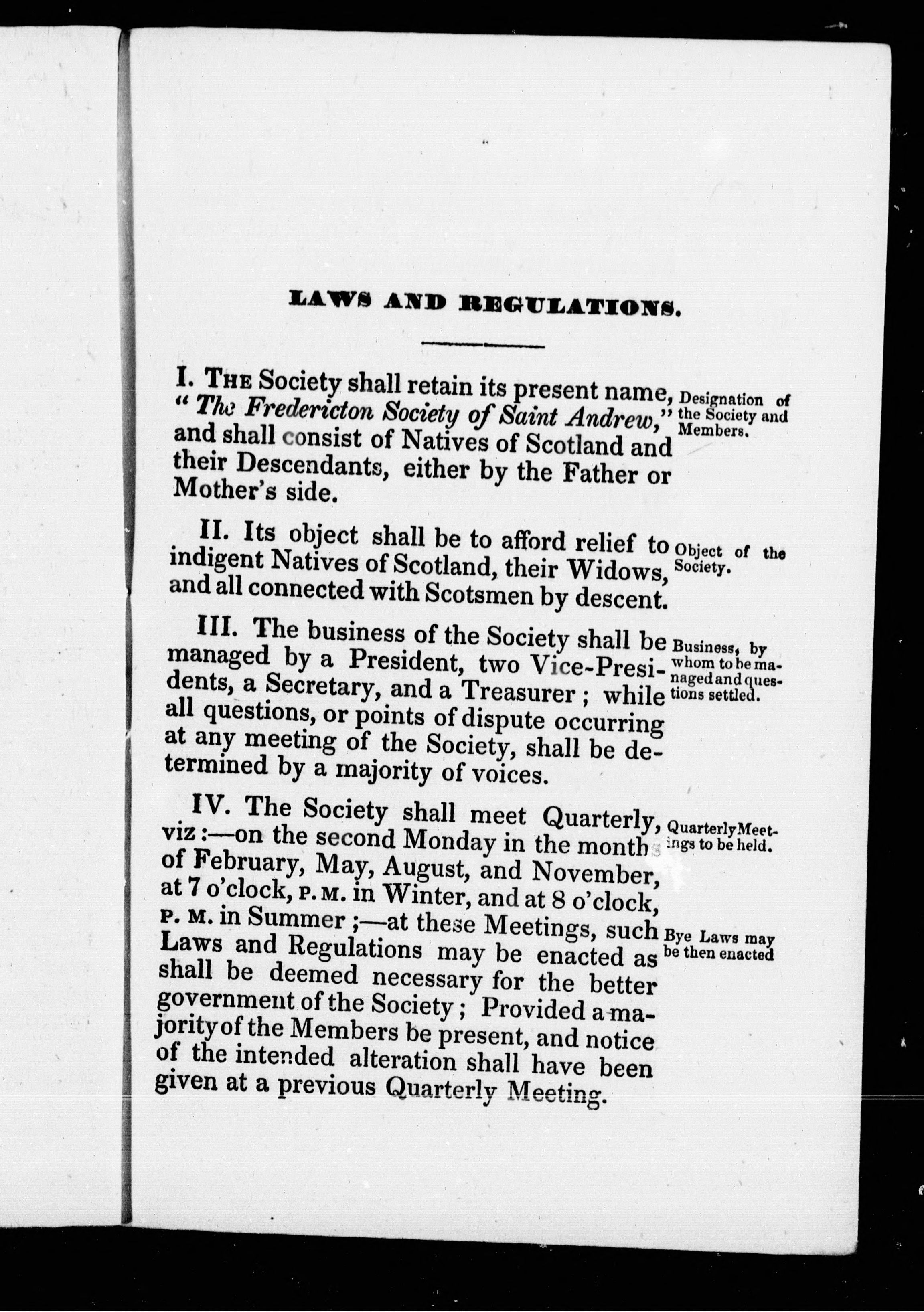 Laws and regulations (revised and amended) of the Fredericton Society of Saint Andrew :