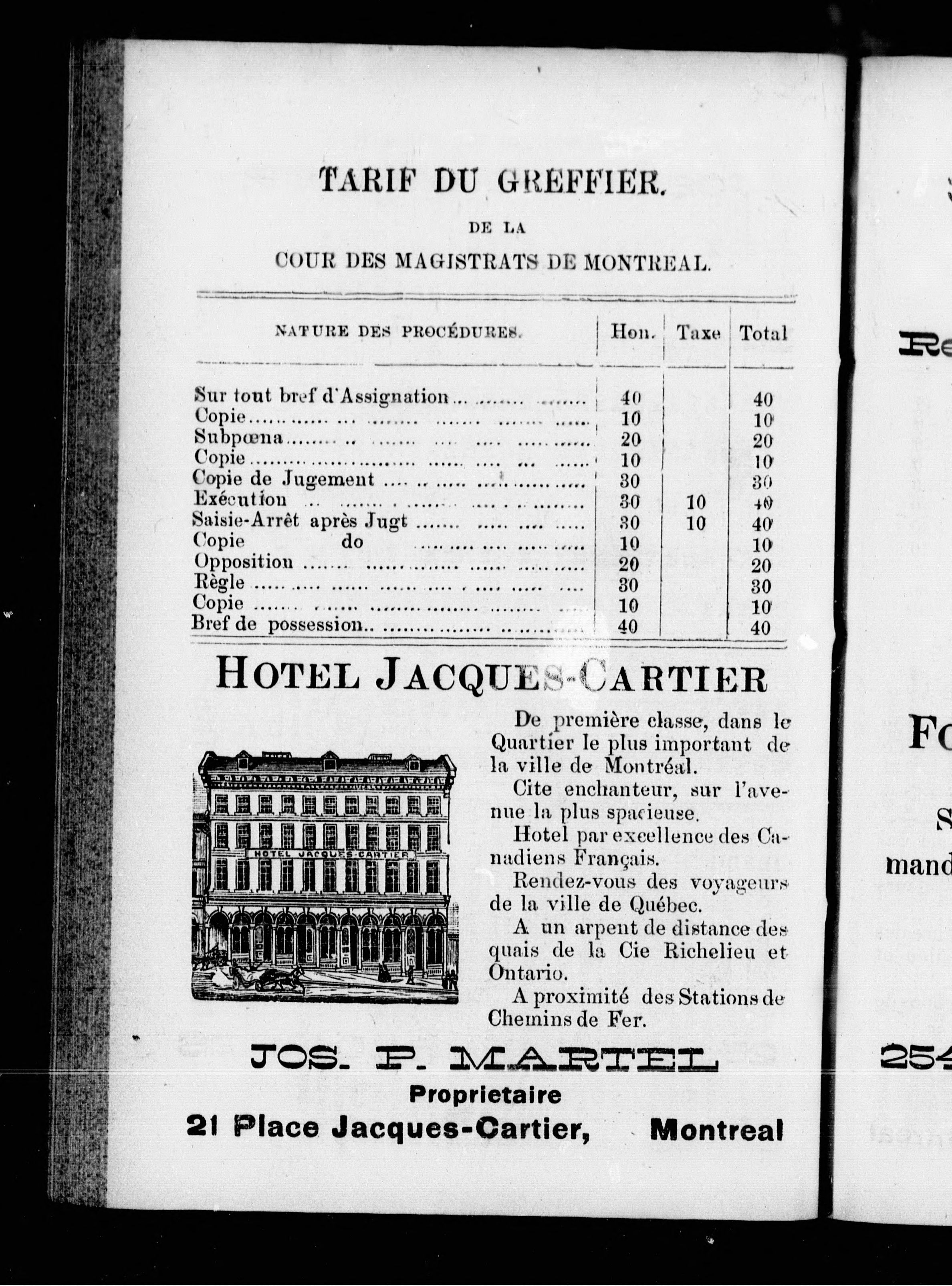 - Livre de références contenant la date et les lieux des séances des cours supérieures et de circuit, dans la province de Québec, une liste des avocats et des huissiers, divers tarifs, etc., etc.