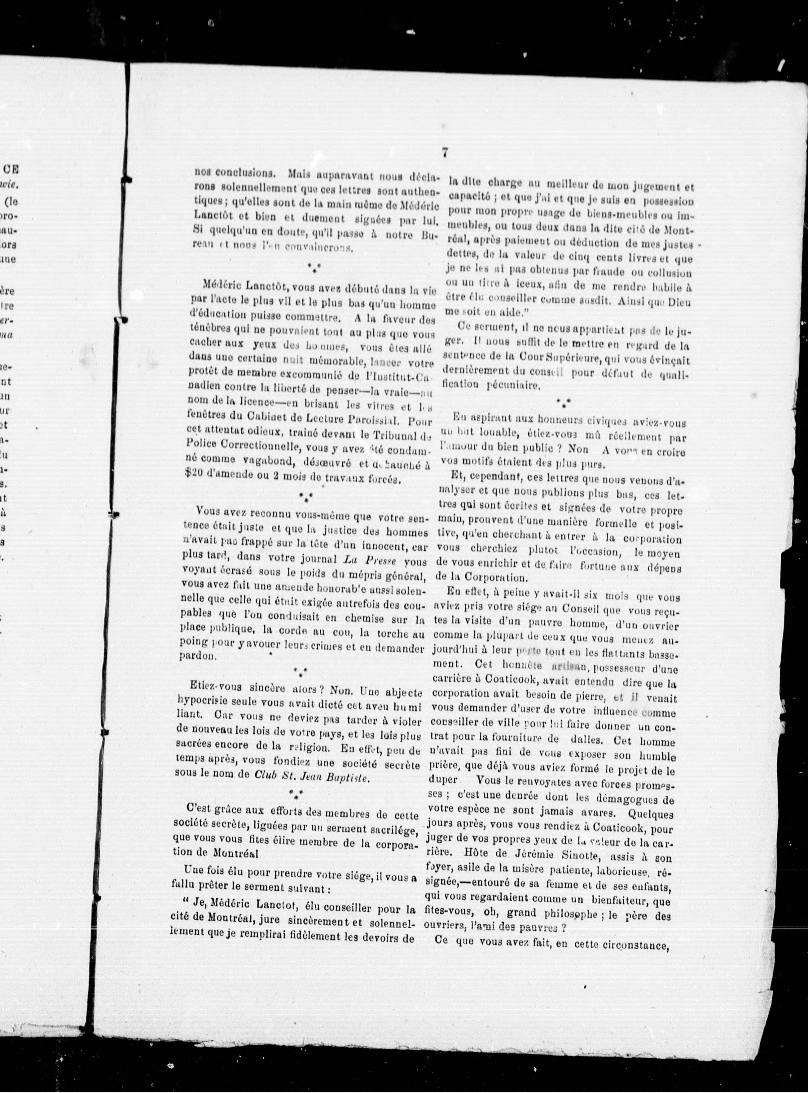 Ouvrage révélent des activités malhonnêtes de la part de Médéric Lanctot dont l'élection au conseil municipal de Montréal était contestée.