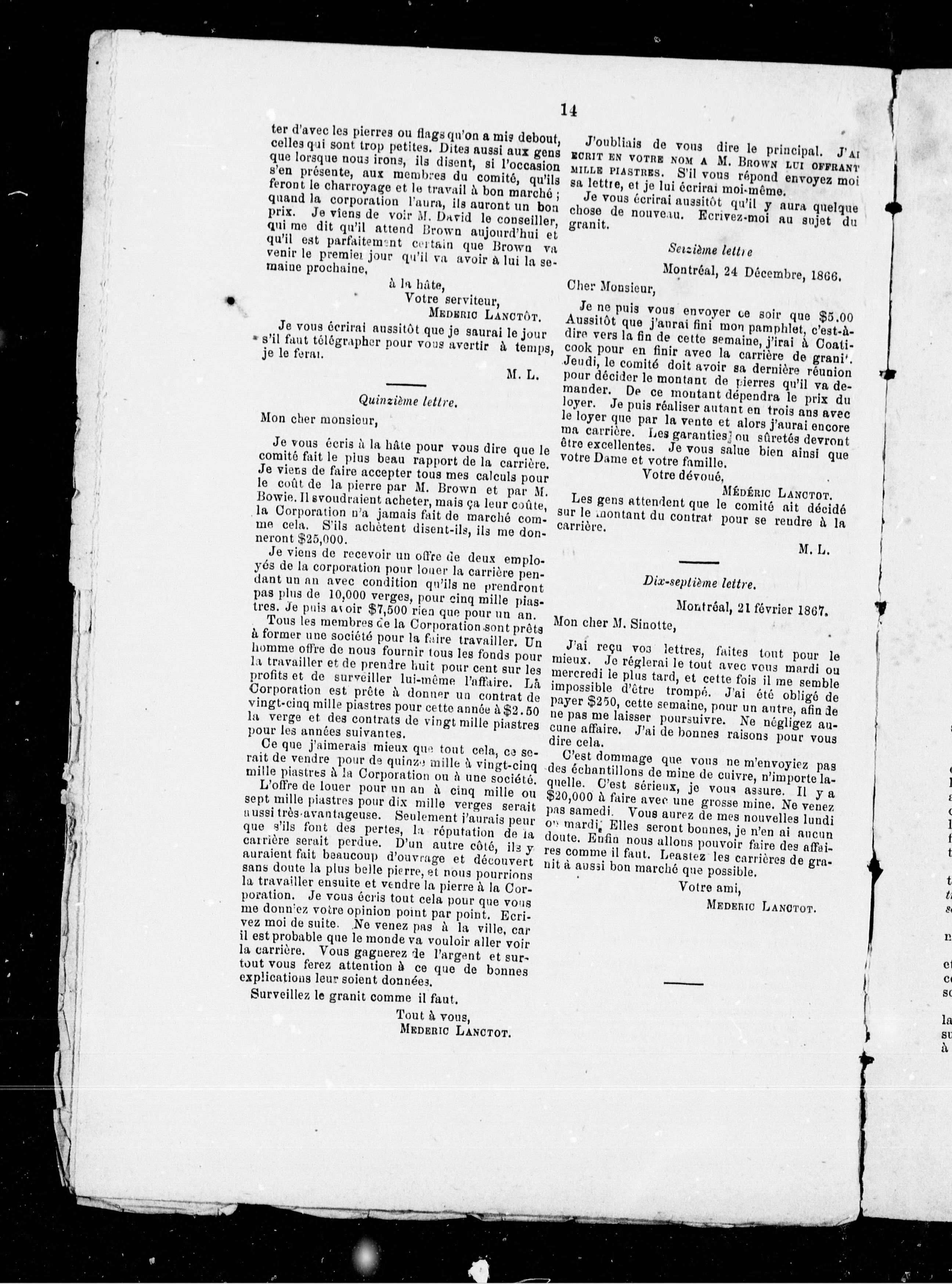 Dix-sept lettres de M. Lanctot à J. Sinotte sont reproduites pages 10-14.
