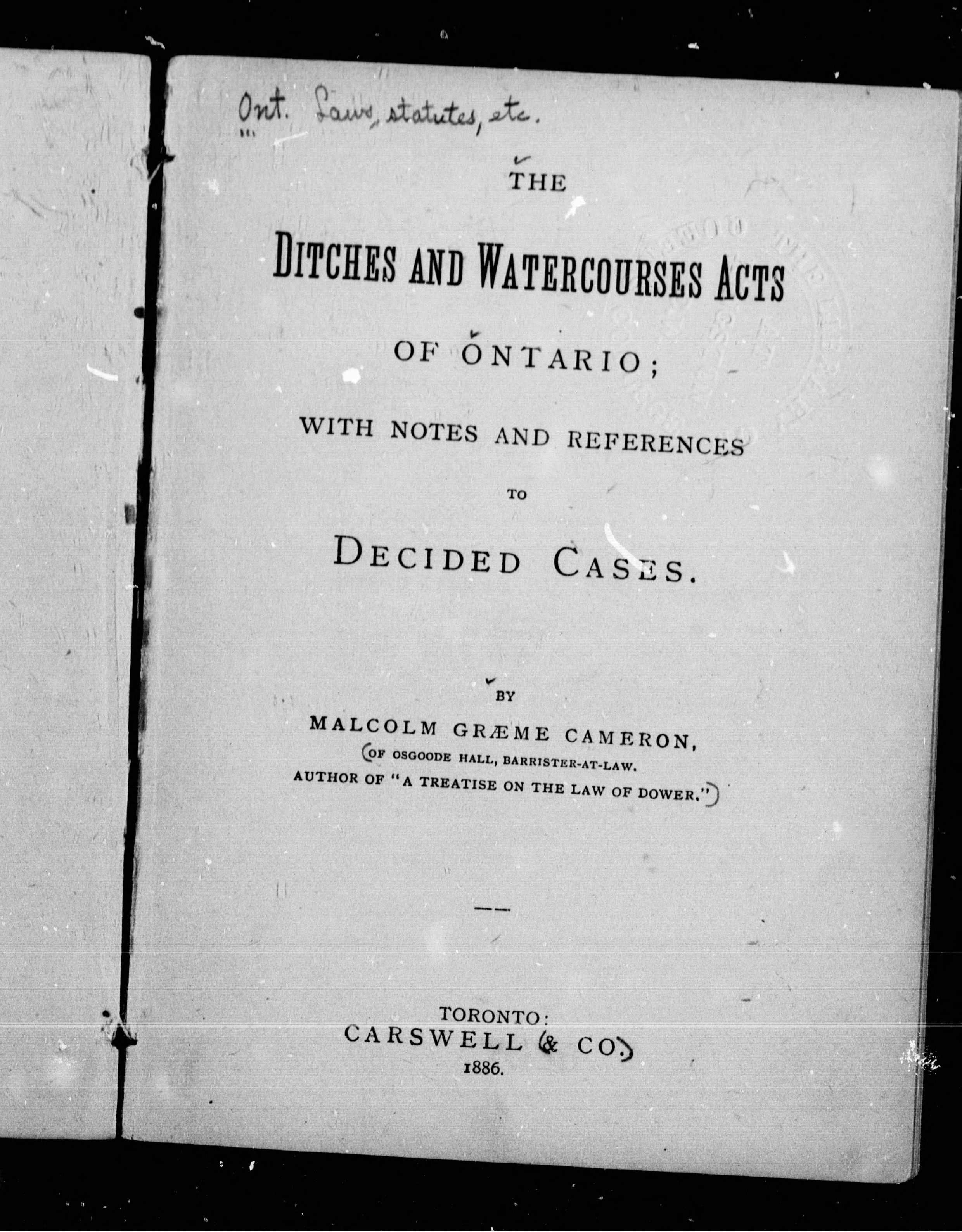 - The ditches and watercourses acts of Ontario : with notes and references to decided cases