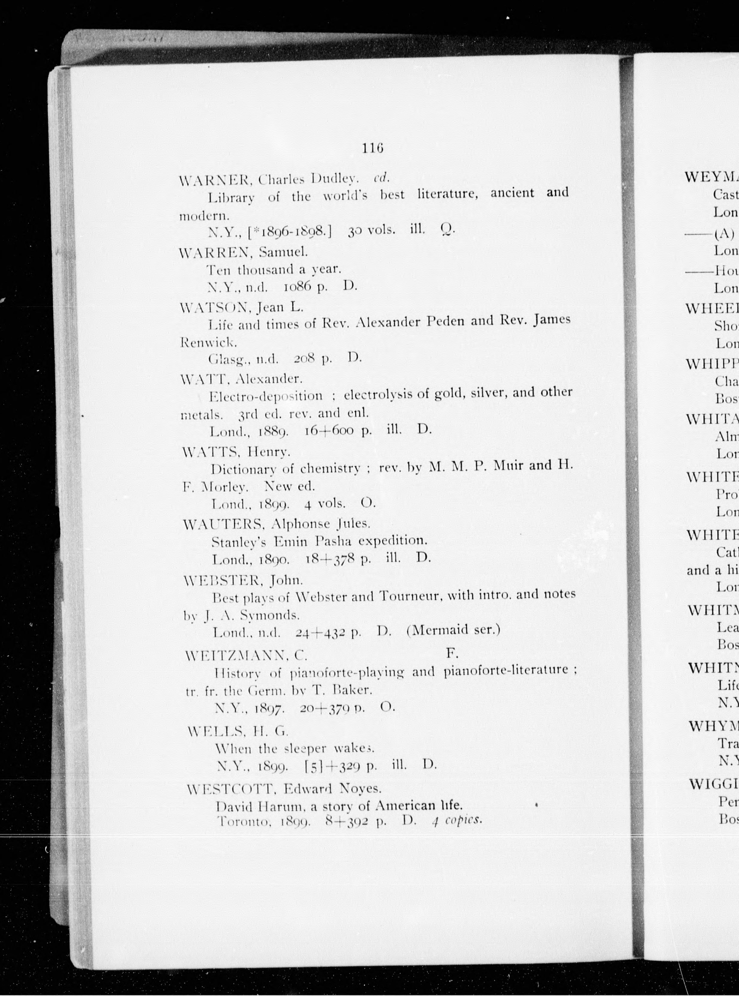 Author list of works in the Westmount Public Library : to which are appended a fiction list and a list of books for young readers.