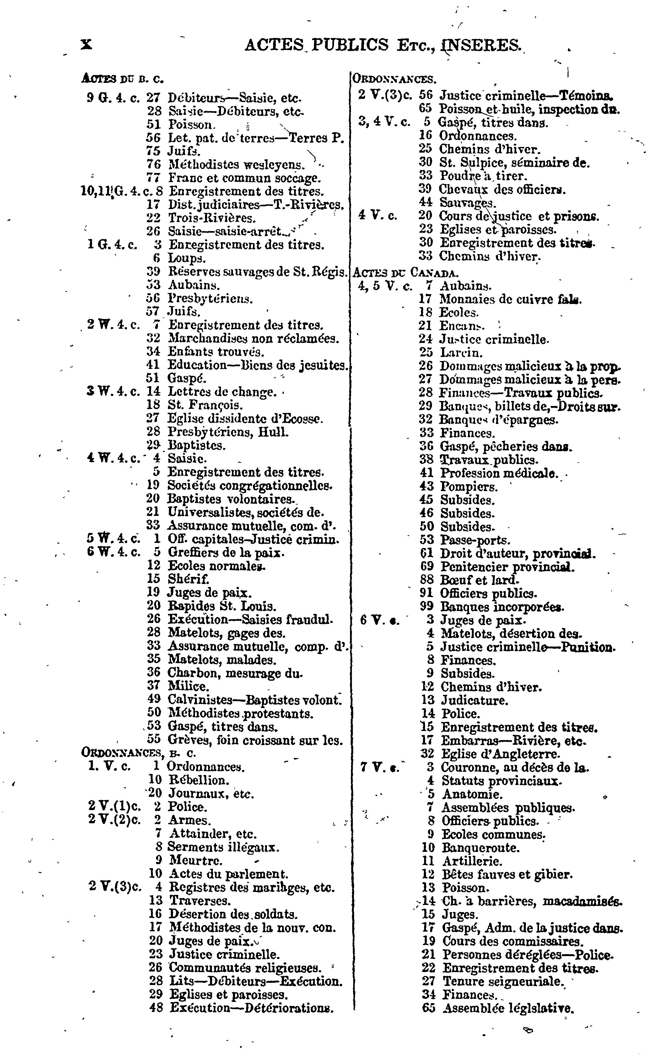 Index des statuts en force dans le Bas Canada, à la fin de la session de 1856 :