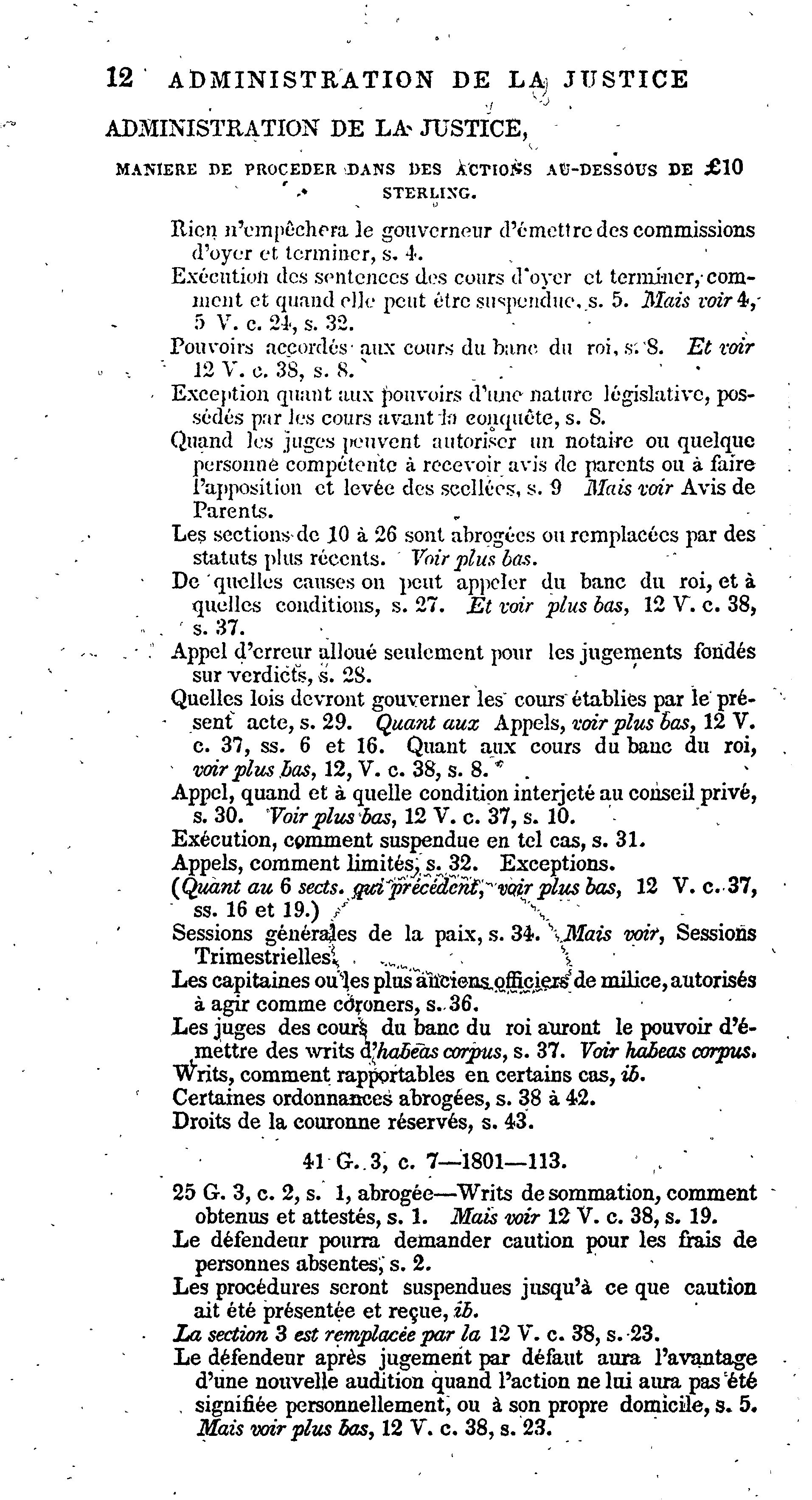 Index des statuts en force dans le Bas Canada, à la fin de la session de 1856 :