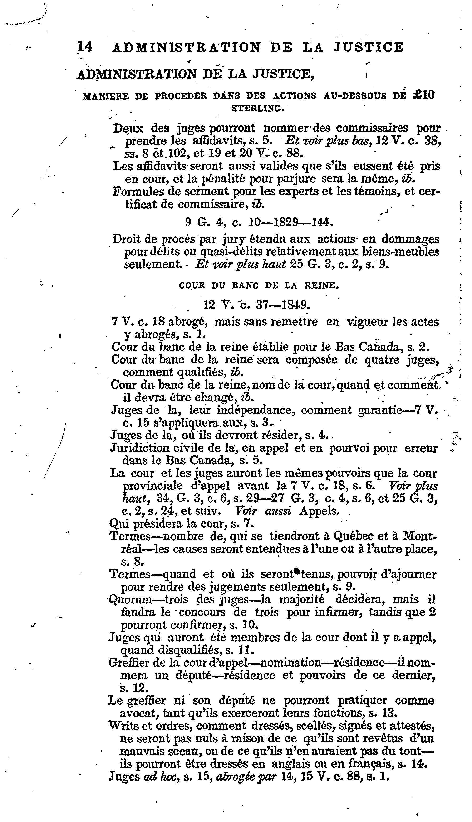 Index des statuts en force dans le Bas Canada, à la fin de la session de 1856 :