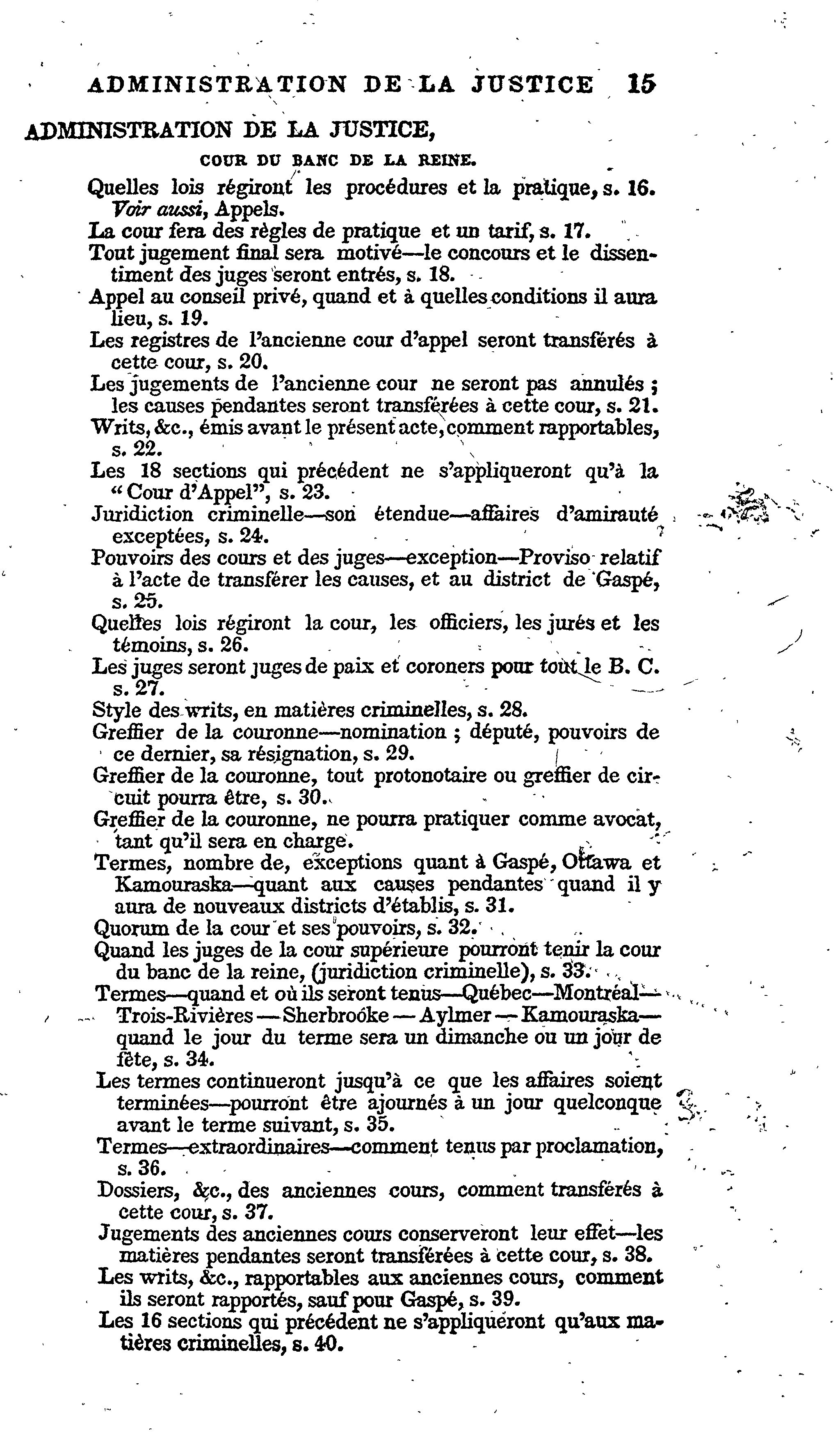 Index des statuts en force dans le Bas Canada, à la fin de la session de 1856 :
