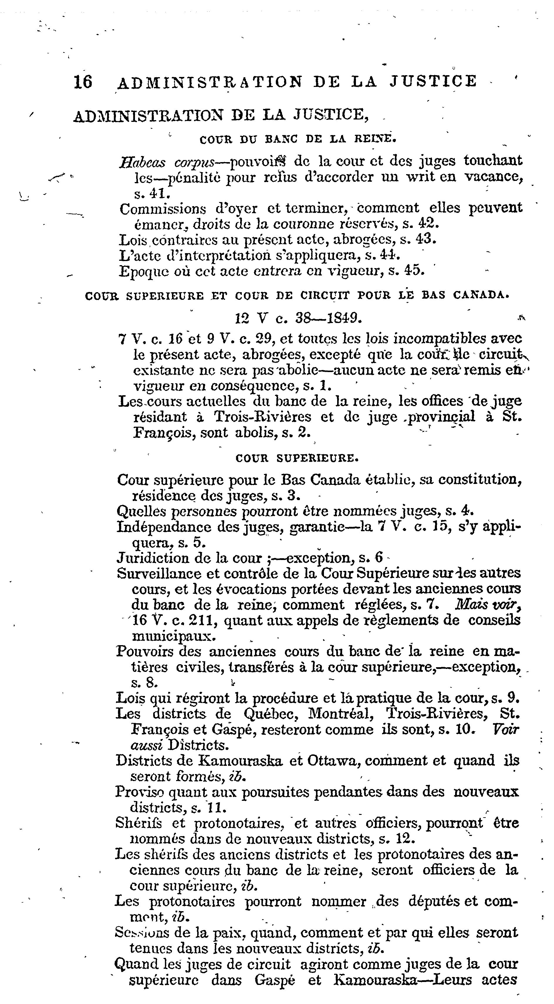 Index des statuts en force dans le Bas Canada, à la fin de la session de 1856 :