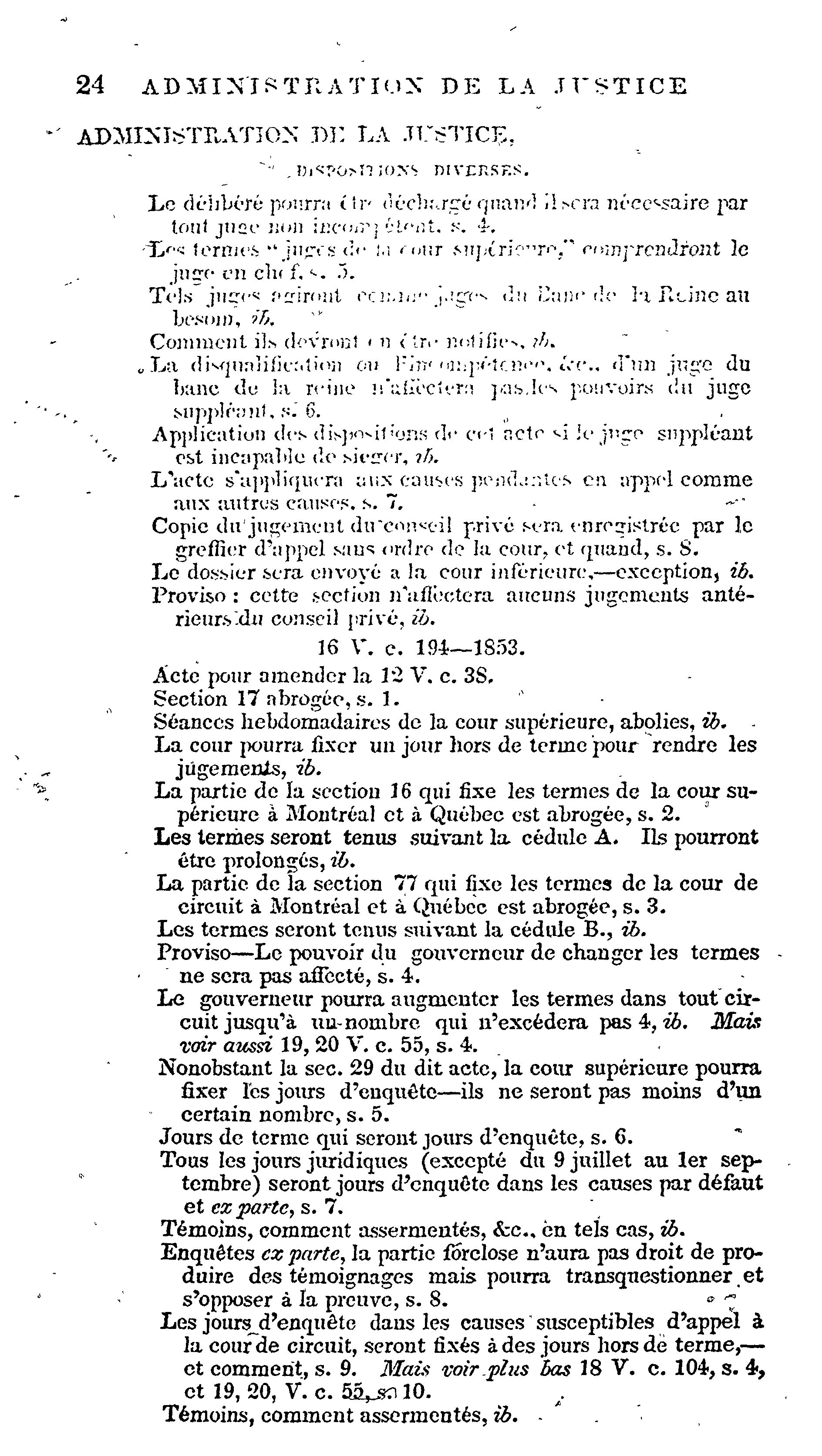 Index des statuts en force dans le Bas Canada, à la fin de la session de 1856 :