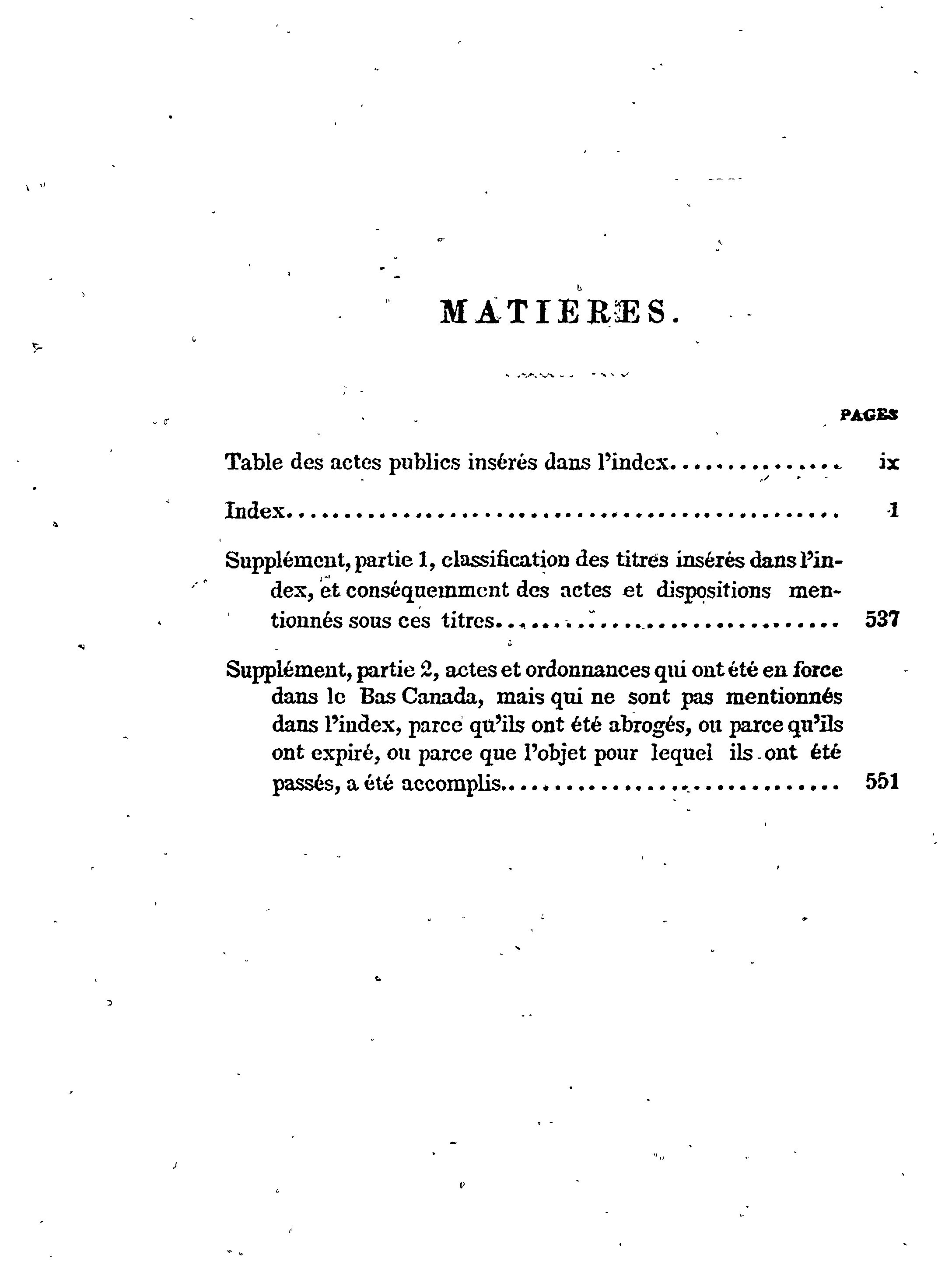 Index des statuts en force dans le Bas Canada, à la fin de la session de 1856 :