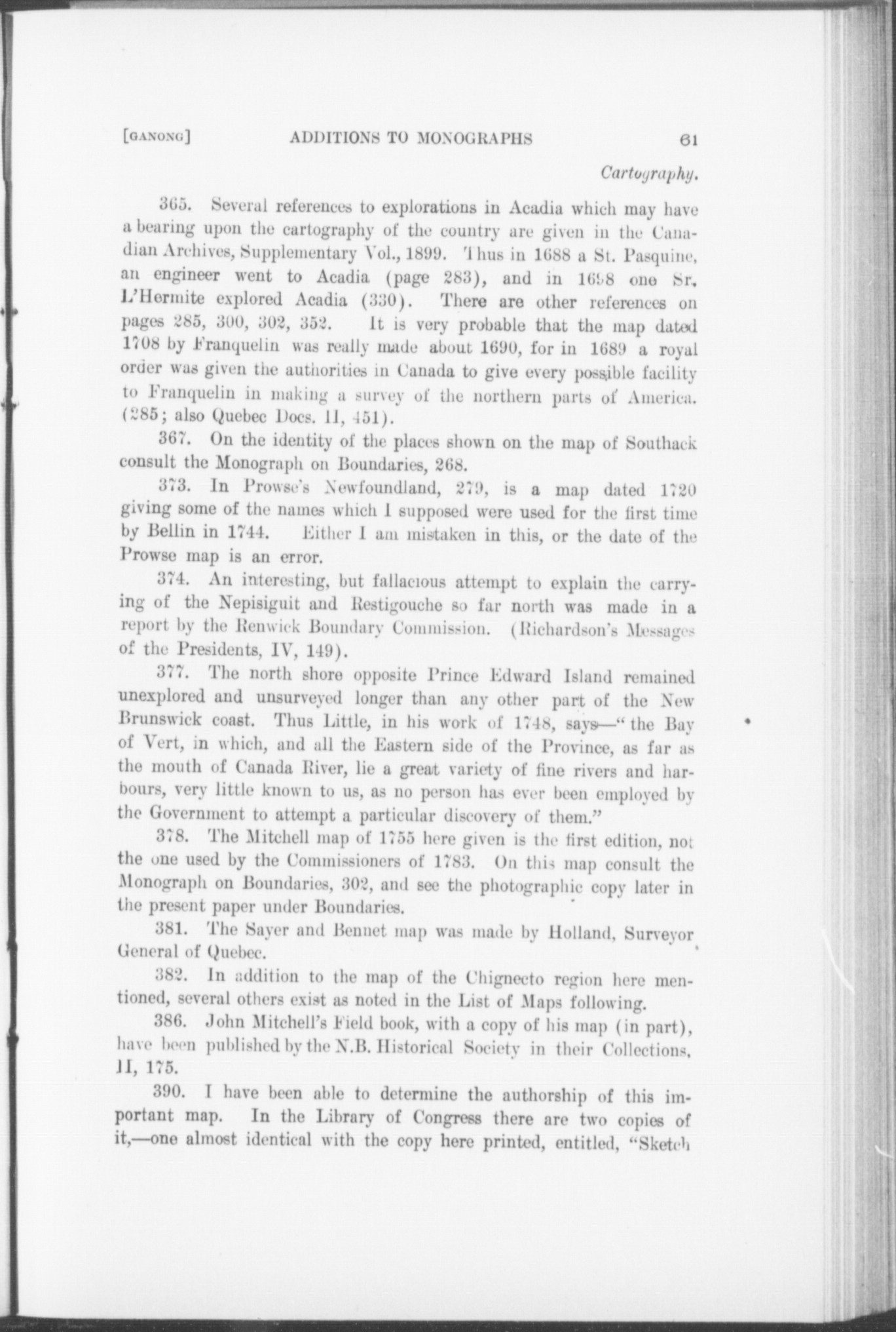 Additions and Corrections to Monographs on the Place-Nomenclature, Cartography, Historic Sites, Boundaries and Settlement-origins of the Province of New Brunswick /
