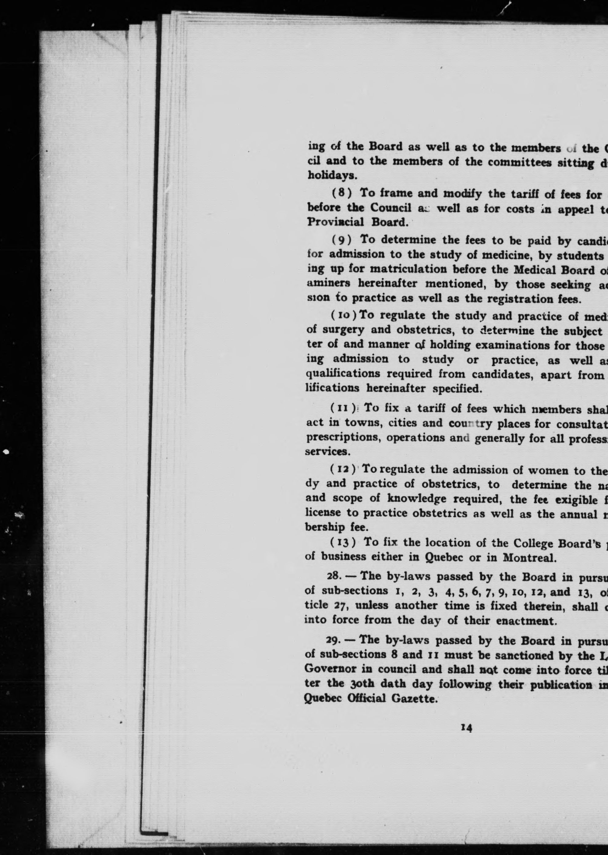 - Quebec (Province) Quebec Medical Act (1909)