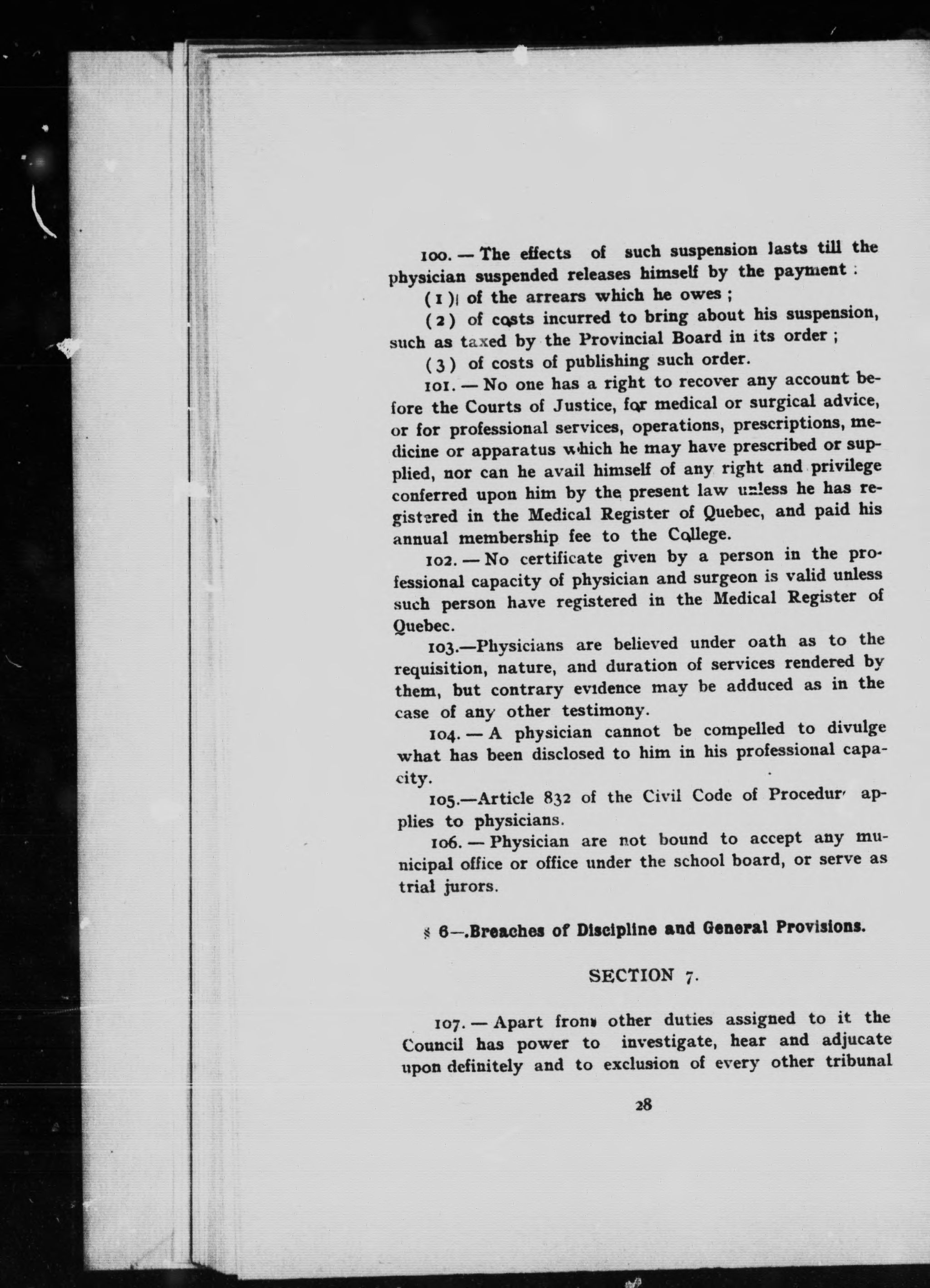 - Quebec (Province) Quebec Medical Act (1909)