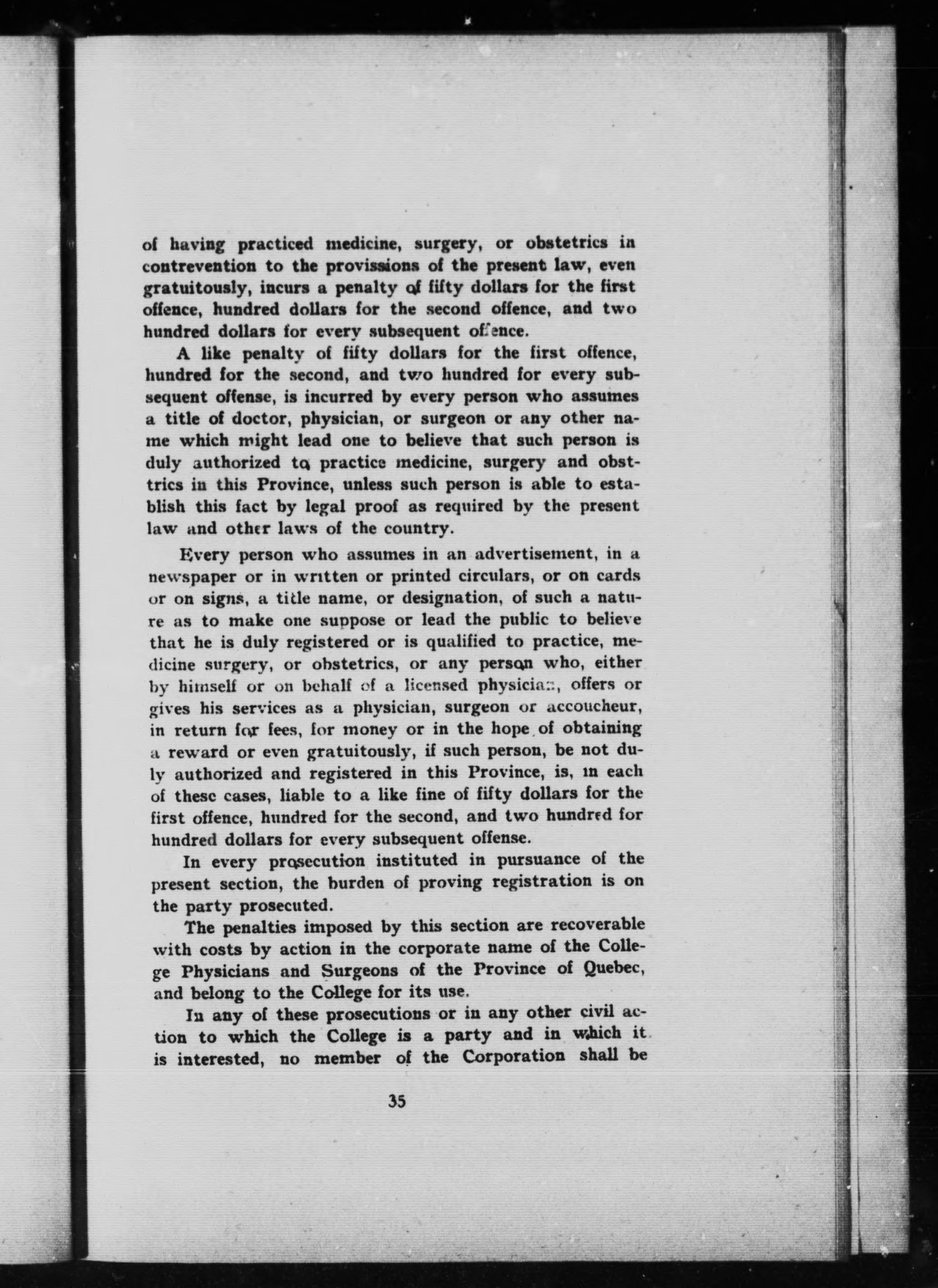 - Quebec (Province) Quebec Medical Act (1909)