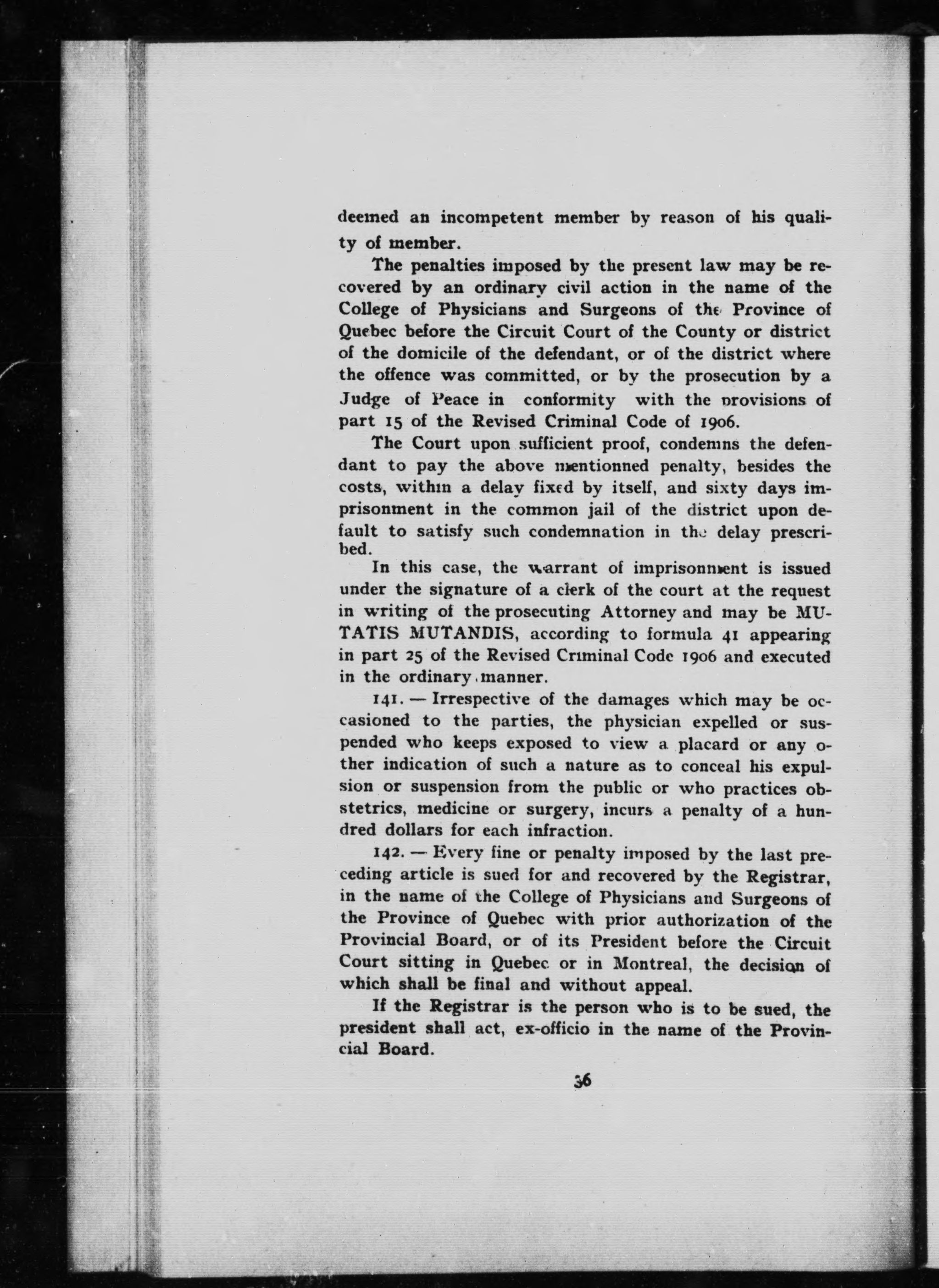 Quebec (Province).Quebec Medical Act.