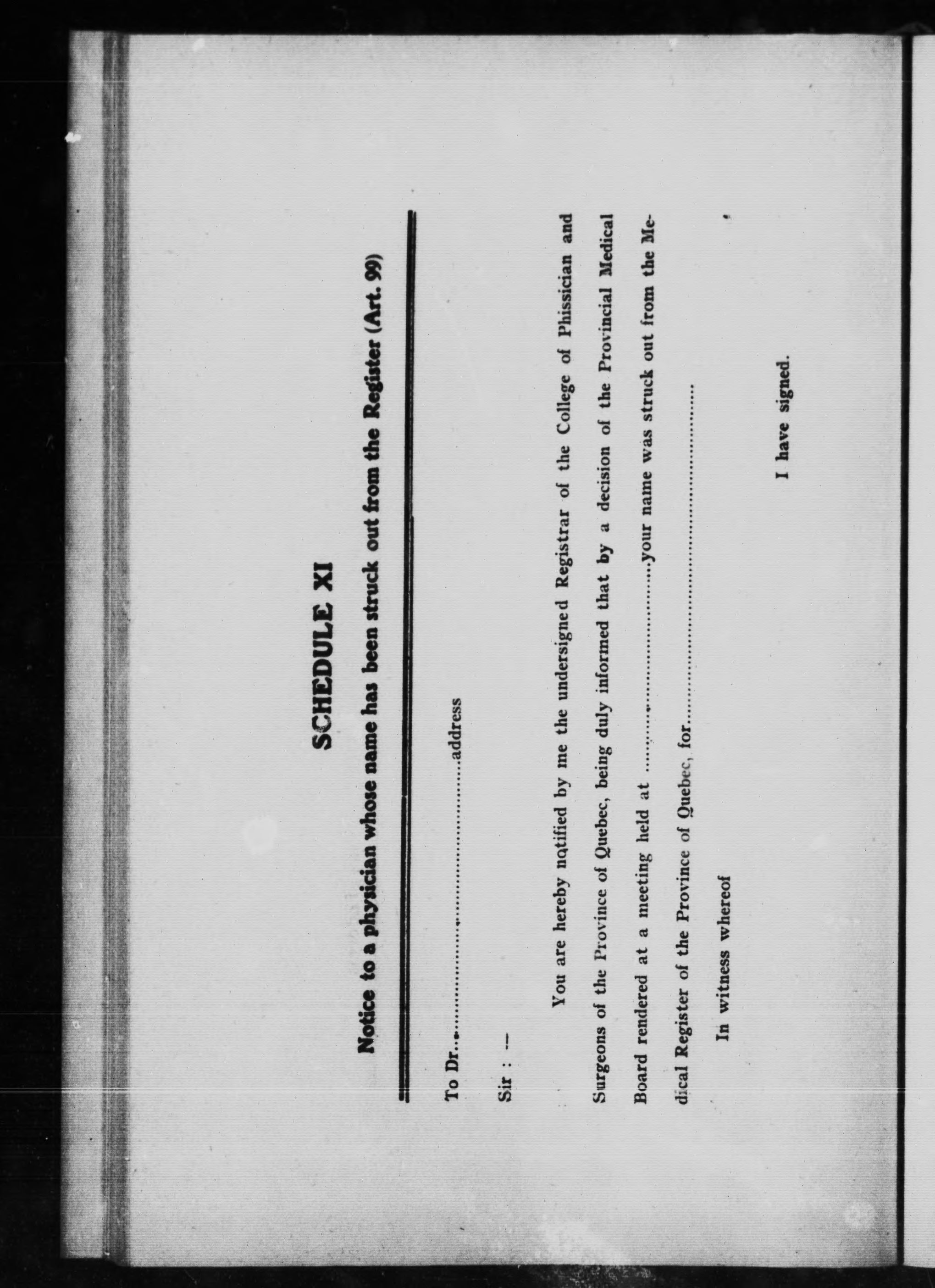 College of Physicians and Surgeons of the Province of Quebec.