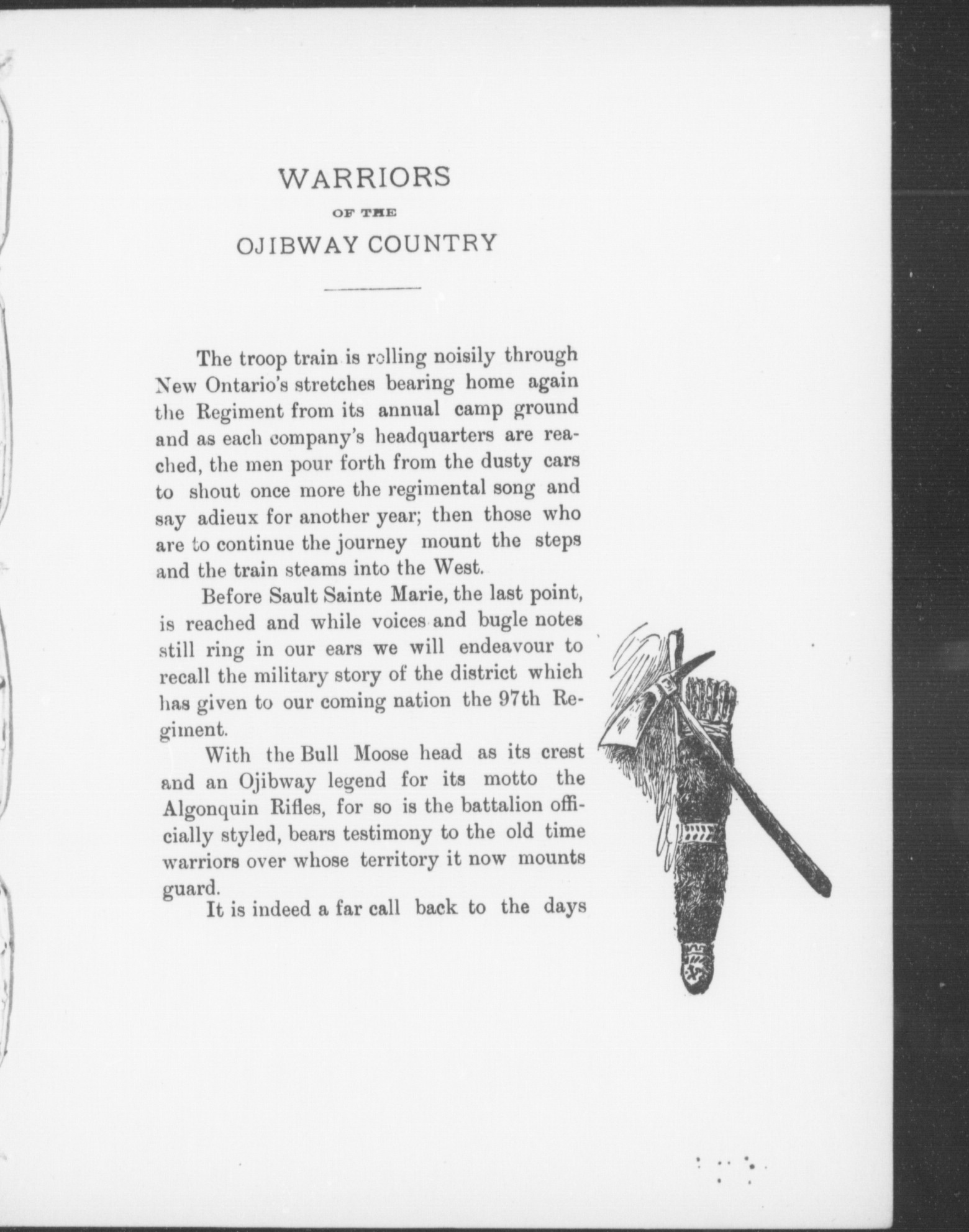 - Warriors of the Ojibway country, 97th Regiment Algonquin Rifles of Canada, 1908