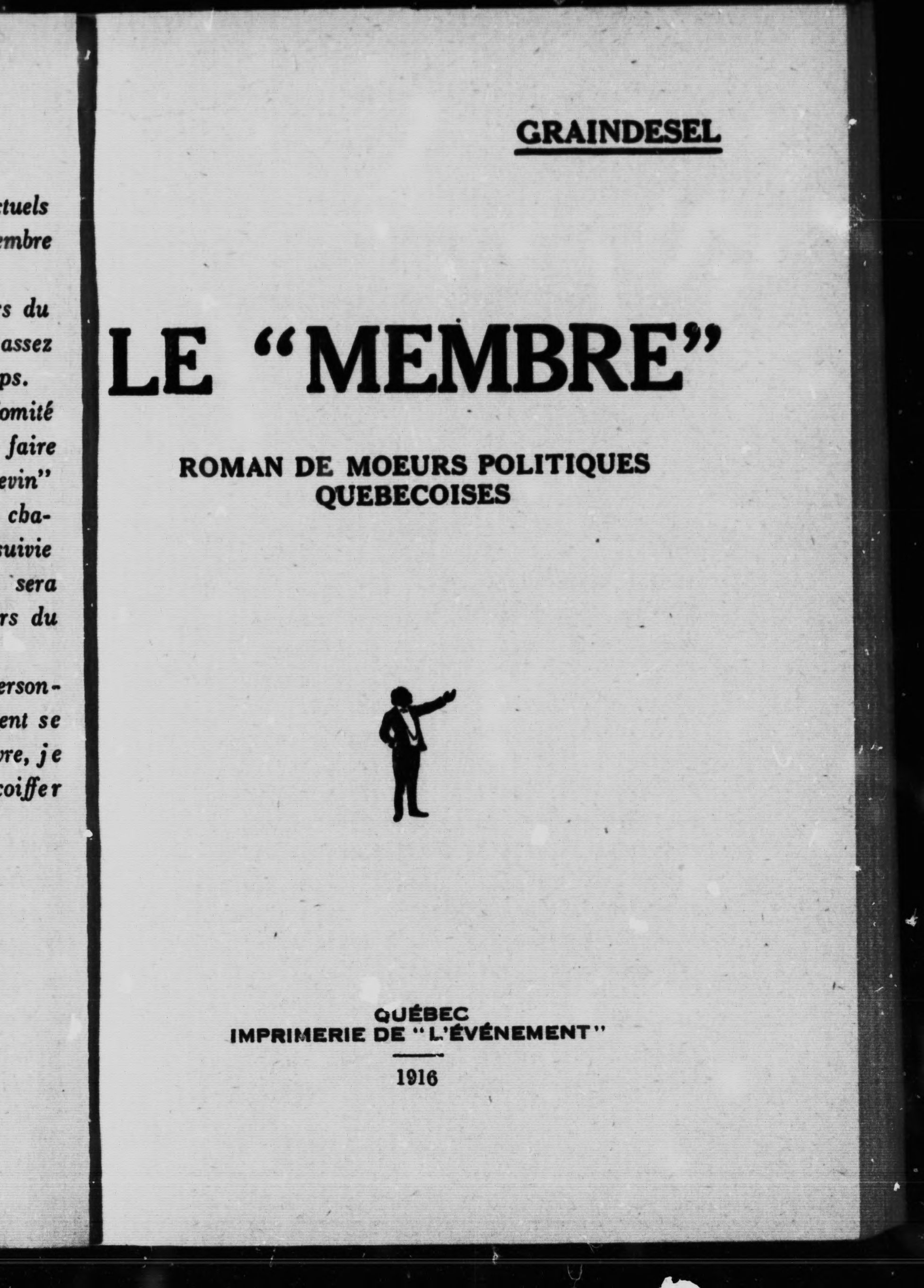 - Le "membre" : roman de moeurs politiques québécoises