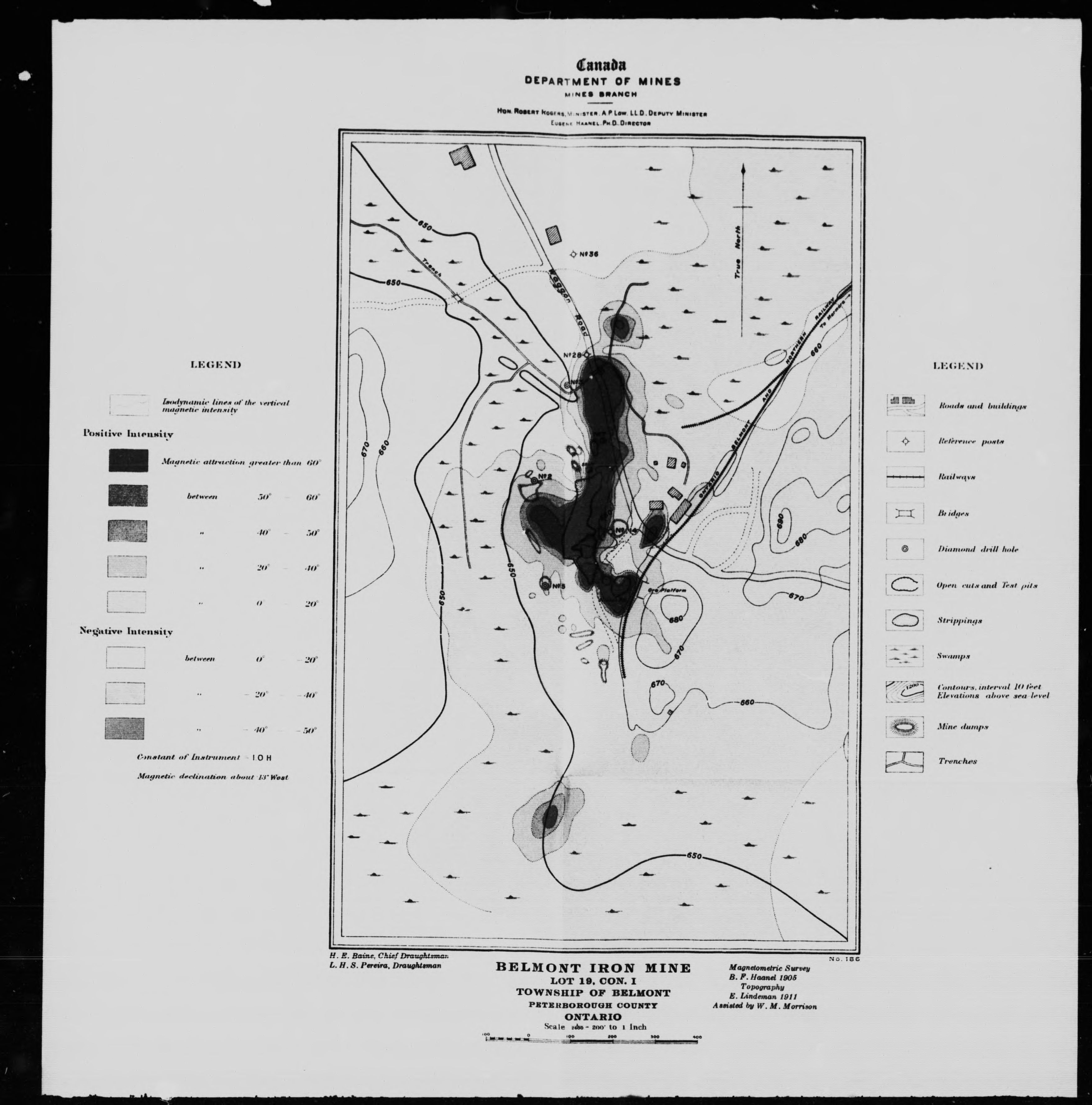 Draftsmen and surveyors named on the maps: H.E. Baine, L.H.S. Pereira, D. Westwood, E. Lindeman, W.M. Morrison, O.G. Gallaher, H. Fréchette, A.H.A. Robinson, W.H. Davies.